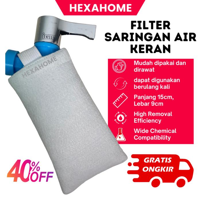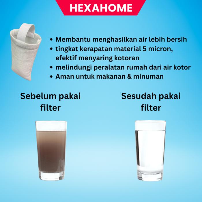 Filter Air Kran HEXAHOME - Saringan Air Kran 5 Micron - Menjernihkan Air Bisa Dipakai Berkali kali - 15cm x 9cm