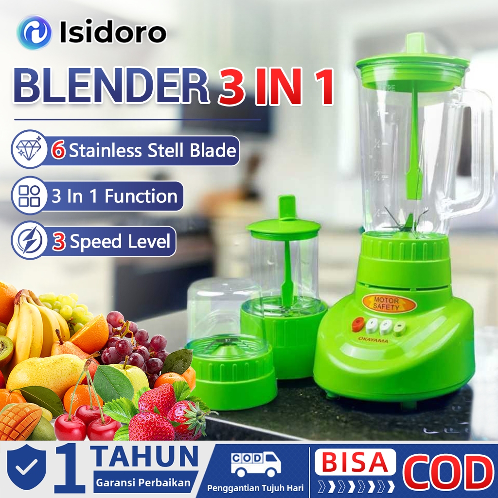 ISDORO 1.2L 2IN1 3IN1 BLENDER PLASTIK YASAKA /BLENDER TABUNG PLASTIK FOODGRADE/blender portable