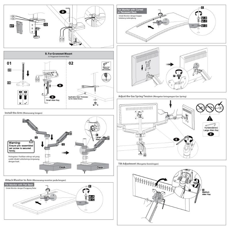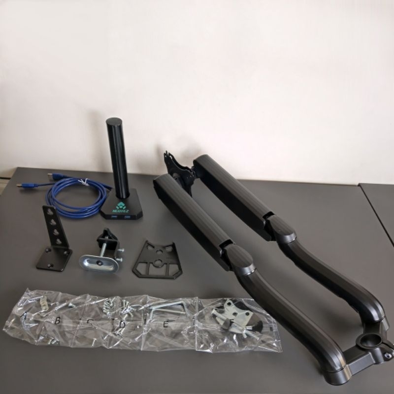 BRACKET DUAL MONITOR LED LCD GAS SPRING OXIMUS P200 P200E SWIVEL ROTATE usb 3.0 x2
