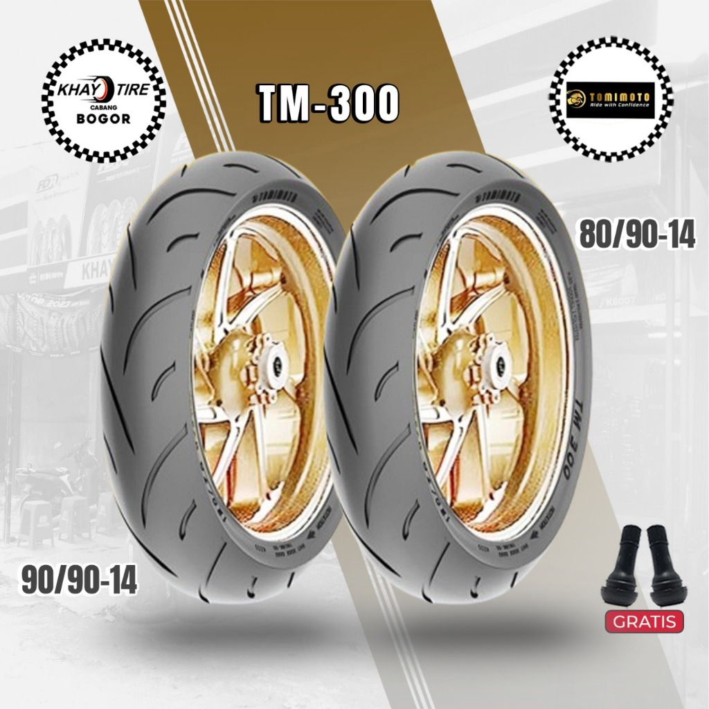 Paket Ban Motor Matic Tomi Moto 300 80/90 - 90/90 Ring 14 Tubeless (FREE WRAPPING & PENTIL)