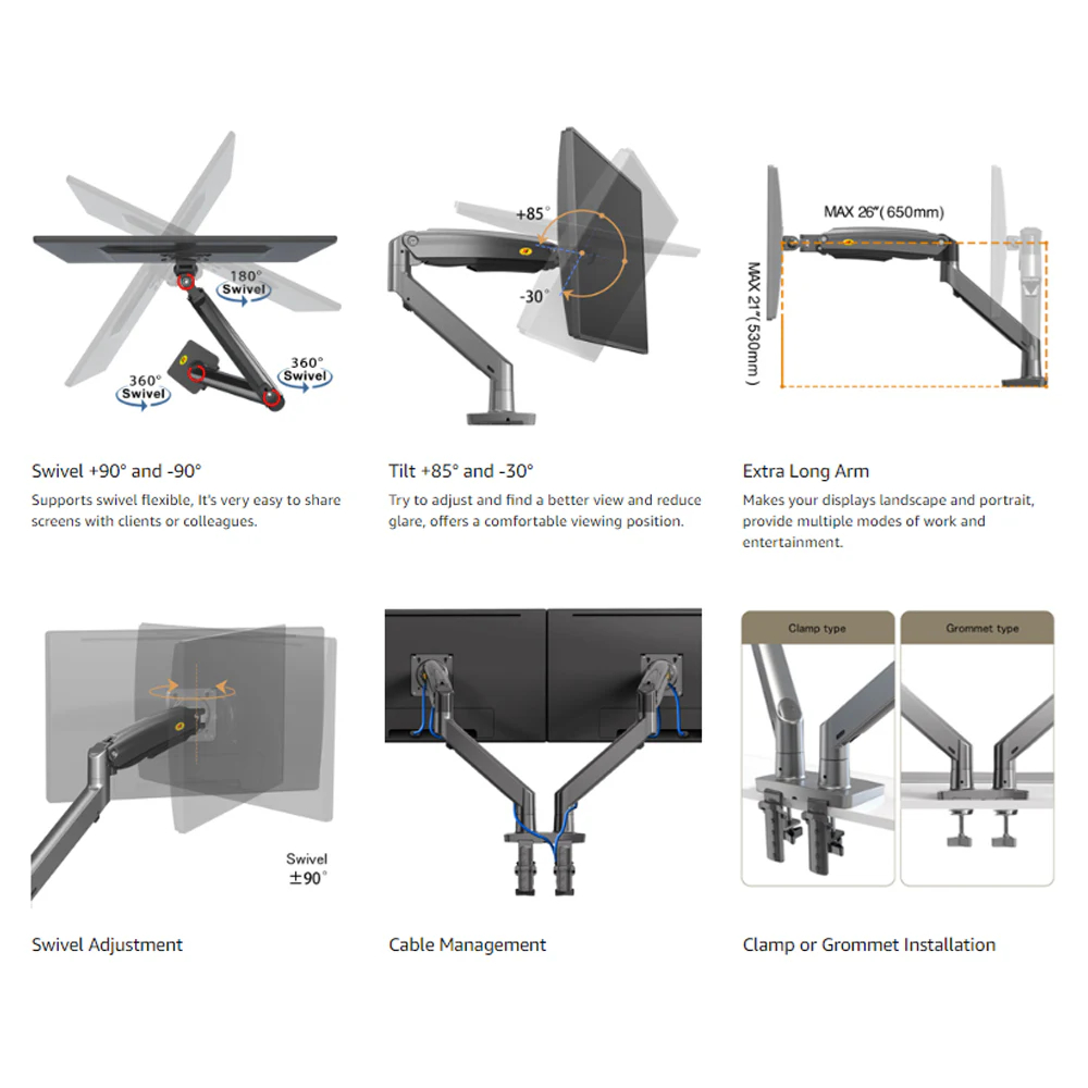 Bracket Monitor 17 - 27 inch, Full Motions Dual Arm Monitor Desk Mount NB F160 New