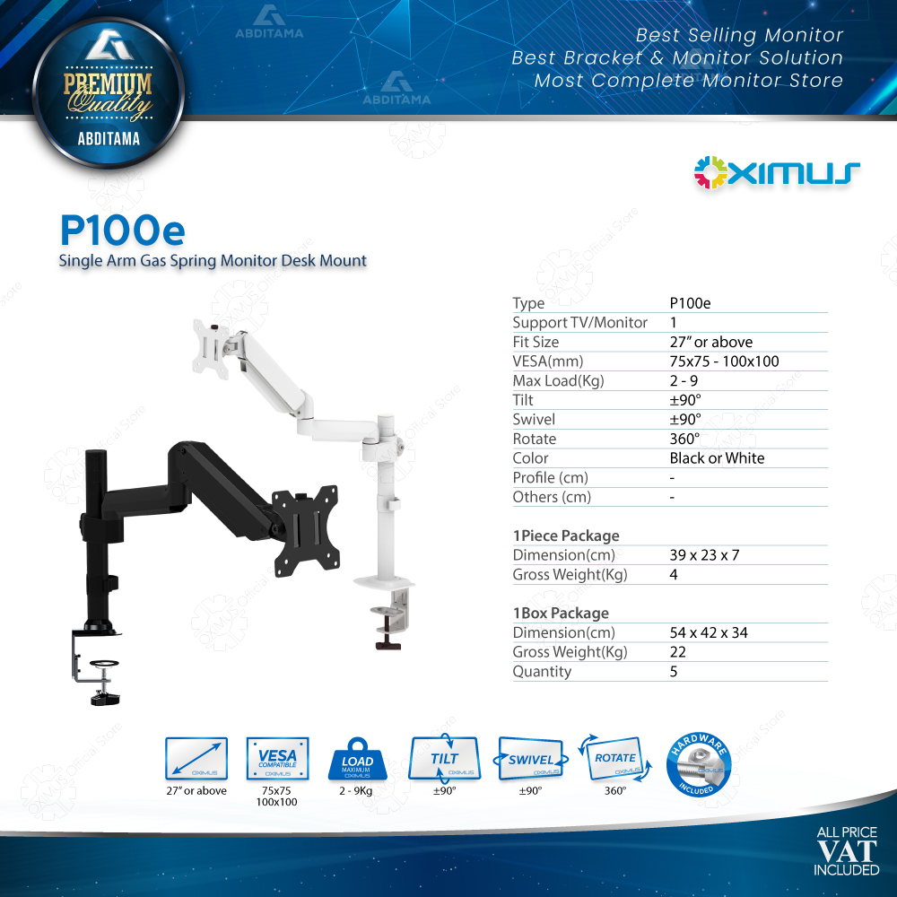 BRACKET MONITOR DESKMOUNT GAS SPRING OXIMUS P100e TILT SWIVEL ROTATE