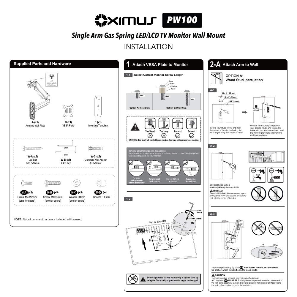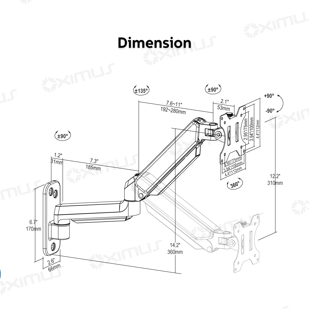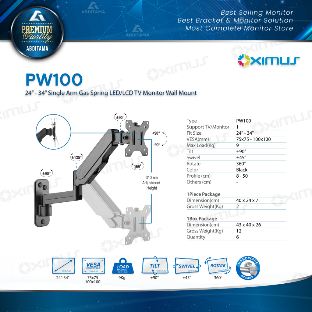 Bracket Monitor TV Wall Gas Spring Naik Turun 24" - 34" OXIMUS PW100