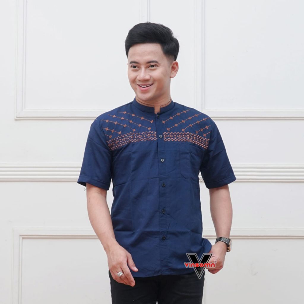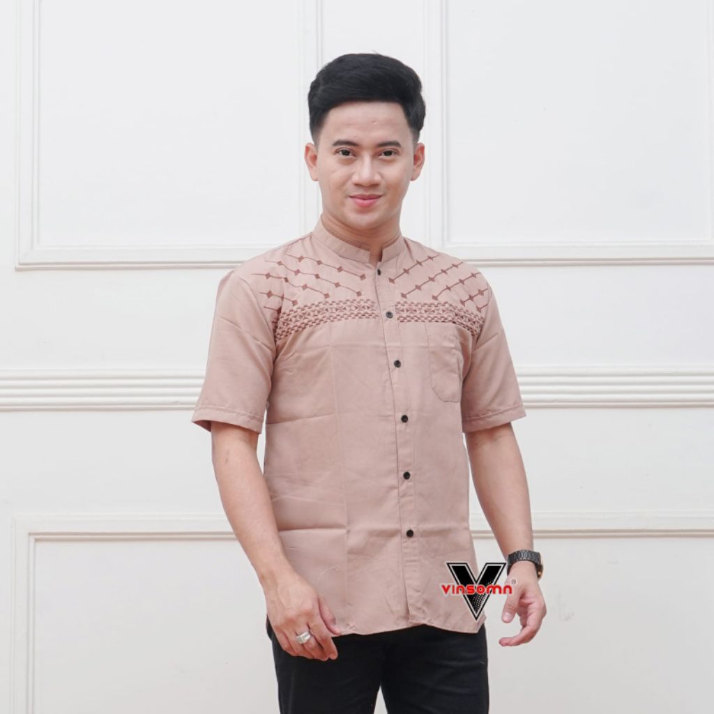 Baju Koko Muslim Katun Adem Bordir Lengan Pendek