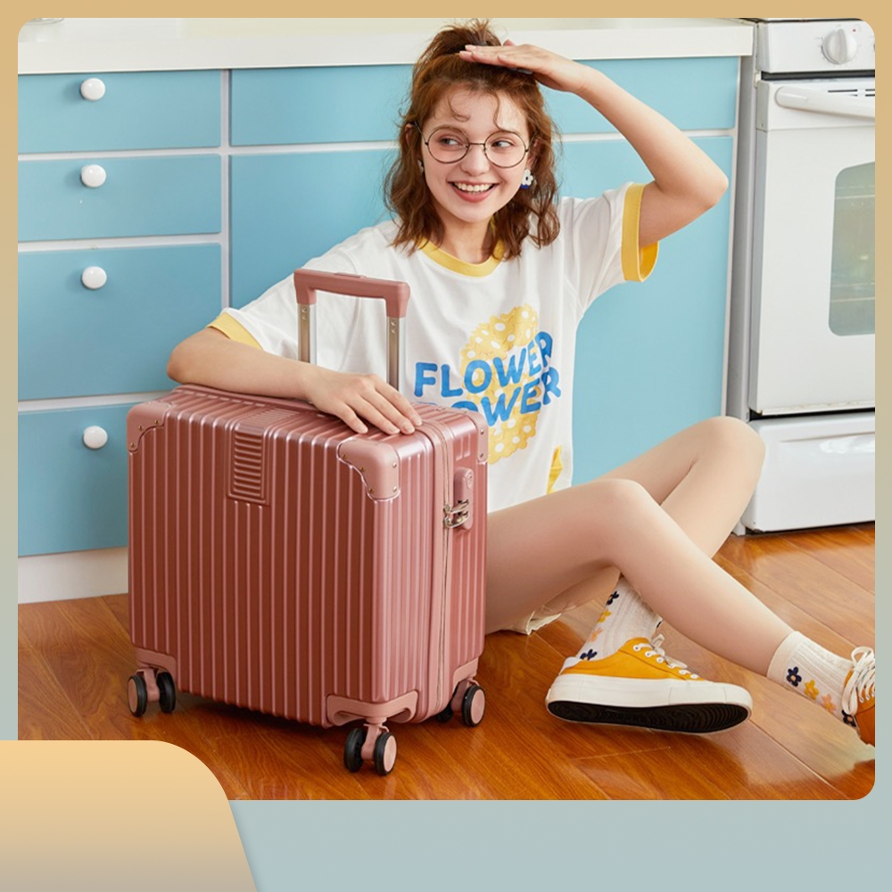 Jzr Koper Penerbangan 18 Inci Tas Travel Casing Beauty Casing Asrama Spinner 360 ° Abs + Pc Koper Asrama Tahan Pecah 360