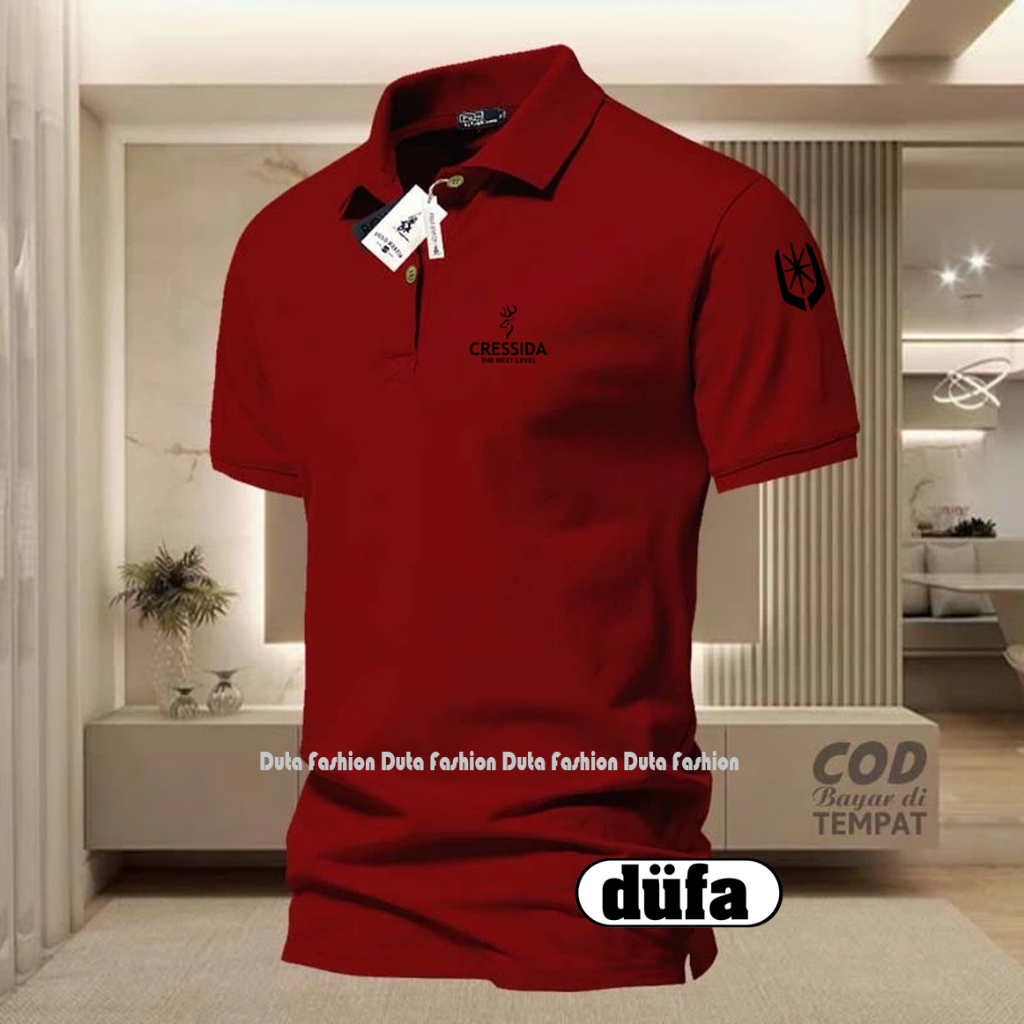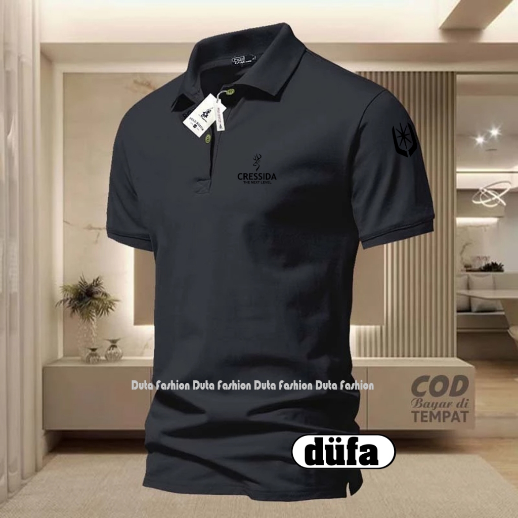 T-shrit POLO Kerah Cressida + Lengan Text Hitam Kaos Kerah Dewasa Shirt / Kaos Wangki Pria Polo / Kaos Seragam