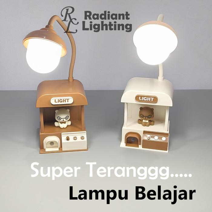 Lampu Meja Baca Belajar LED Lampu Tidur Lucu Model Stasiun Beruang - Coklat