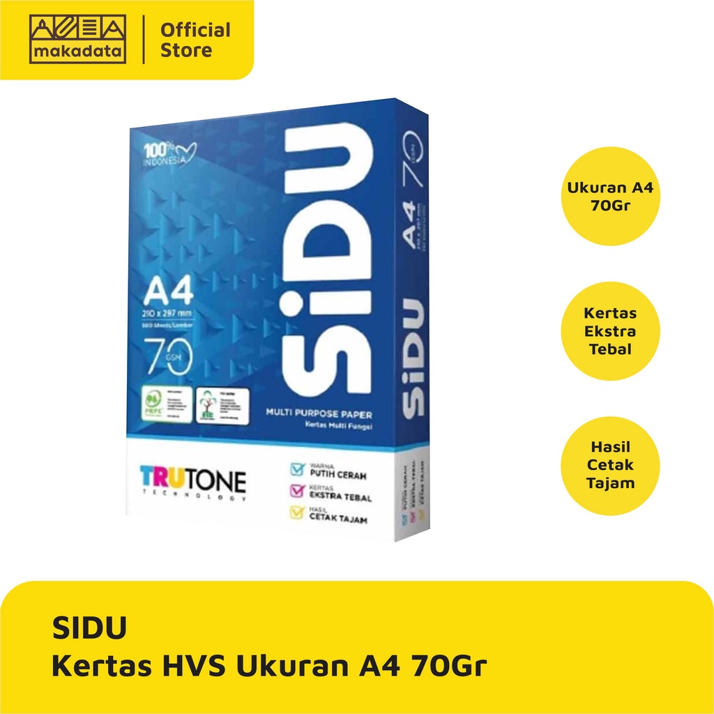KERTAS HVS / PRINT / FOTOCOPY SIDU A4 70 GRAM (1 RIM)