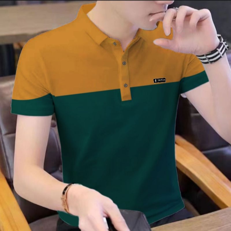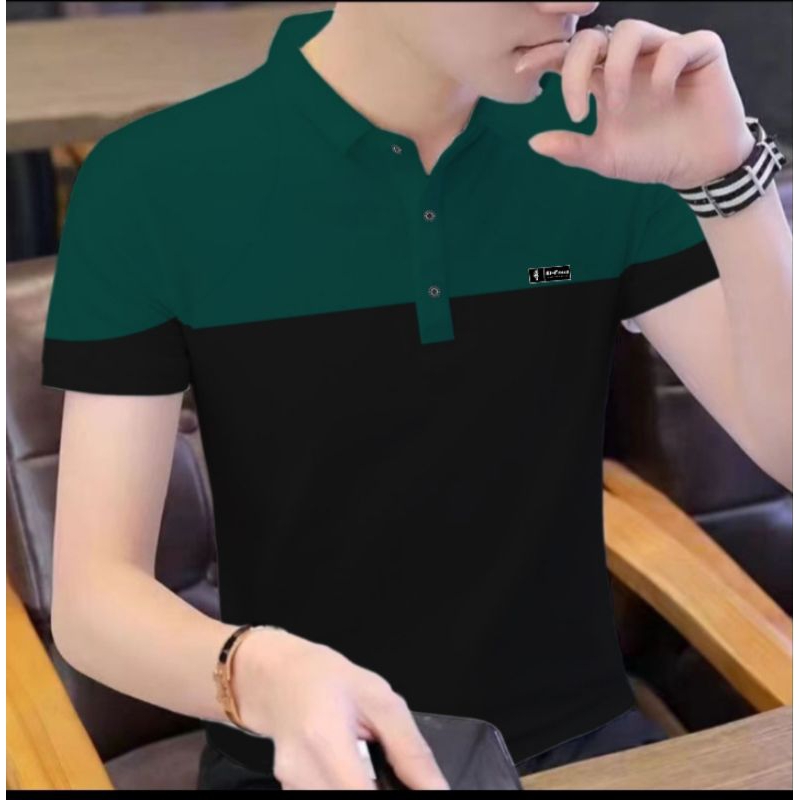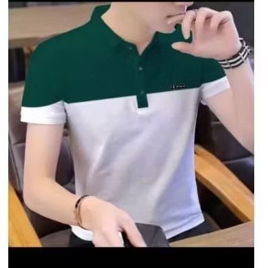 KAOS POLO PRIA TANGAN PENDEK MOTIF KOMBINASI BAJU KERAH MODEL KOREA KEKINIAN EL FAZA