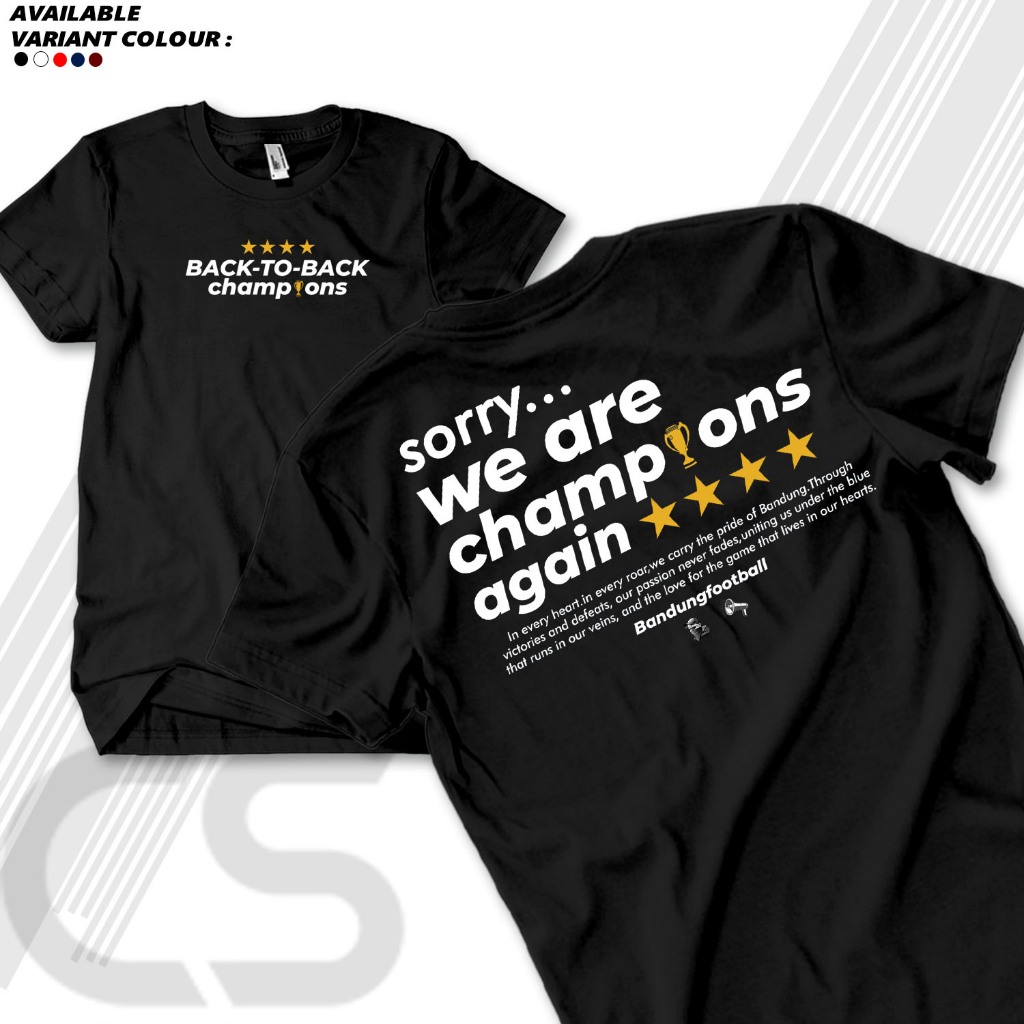 BANDUNG FOOTBALL T-shirt Champions Bk To Bk Sorry We Are Champions Again 4 Stars