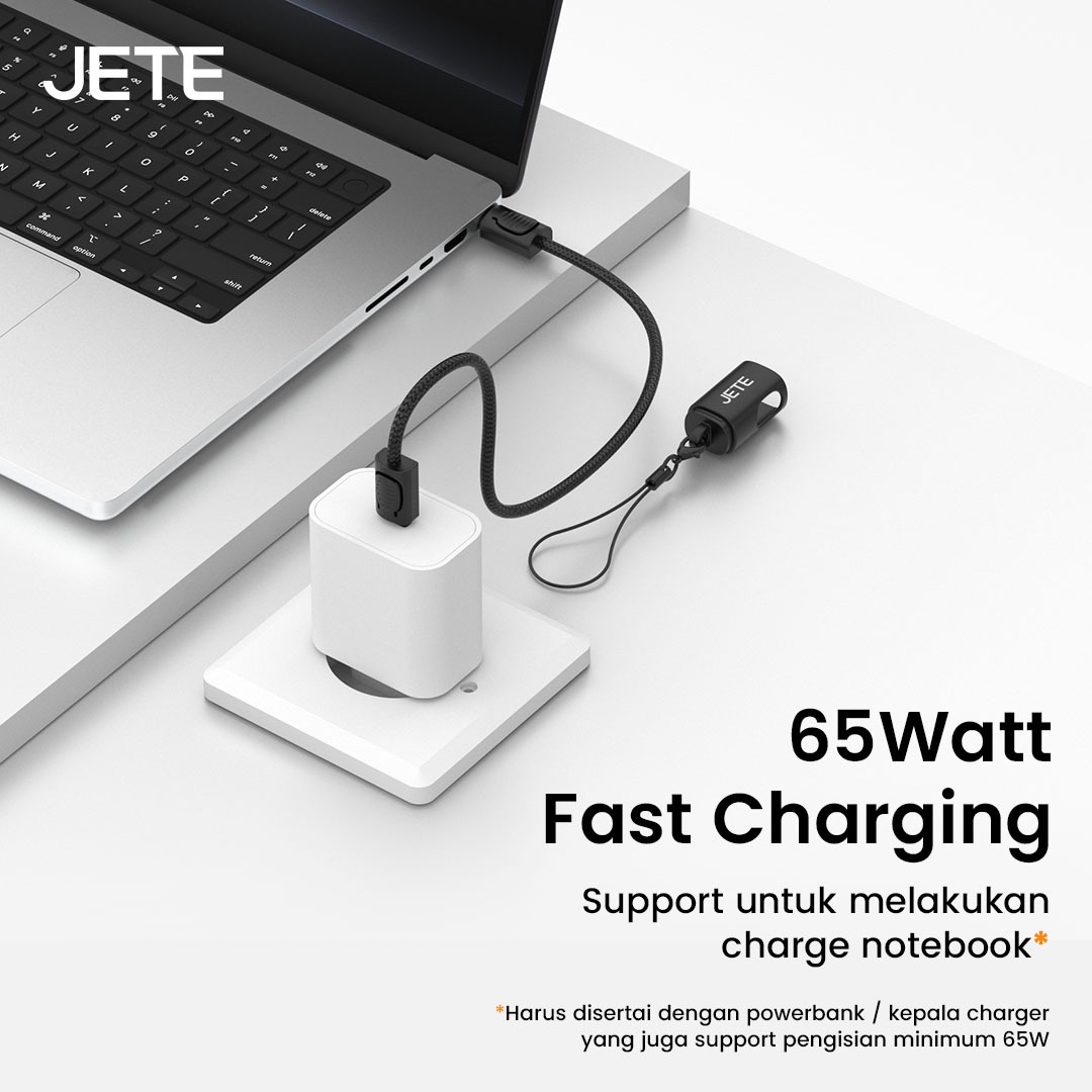 Kabel Data JETE CA3 Kabel Charger Keychain USB Type C to C 65W Fast Charging Cable Kabel Cas Lanyard Tali Gantung For iP