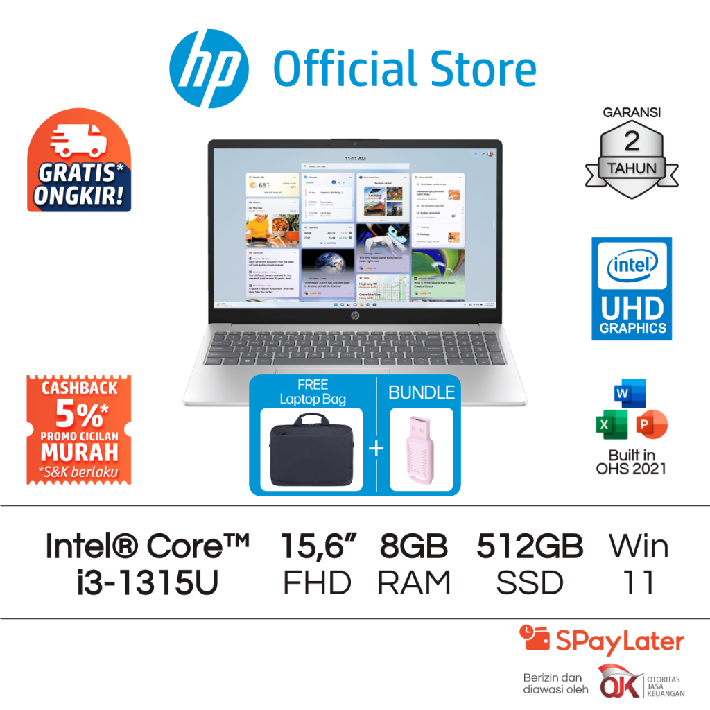 Laptop HP Intel Core i3 UHD 8GB RAM 512GB SSD Silver Windows 11 Home 15.6 Inch Garansi 2 Tahun Promo Murah Gratis Ongkir
