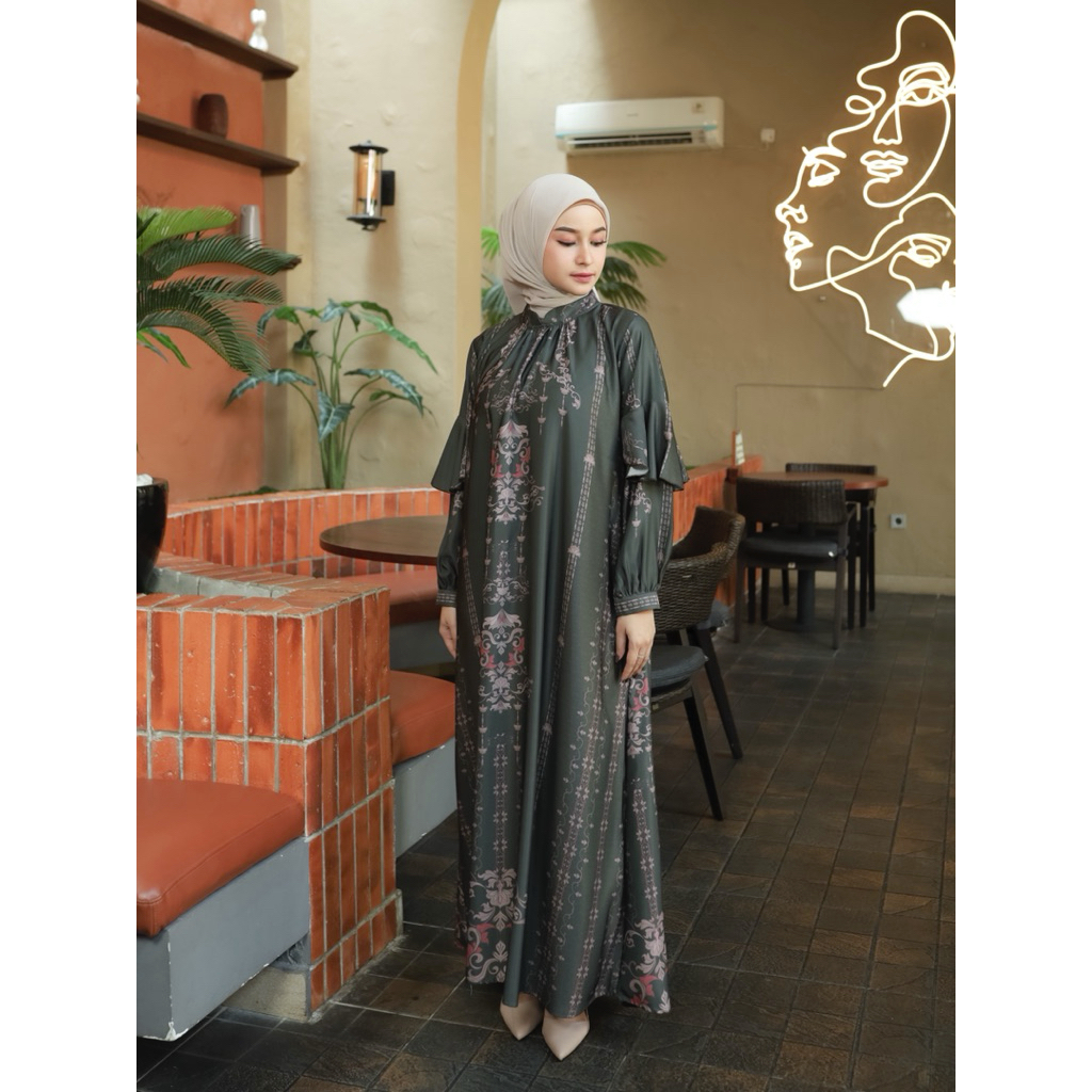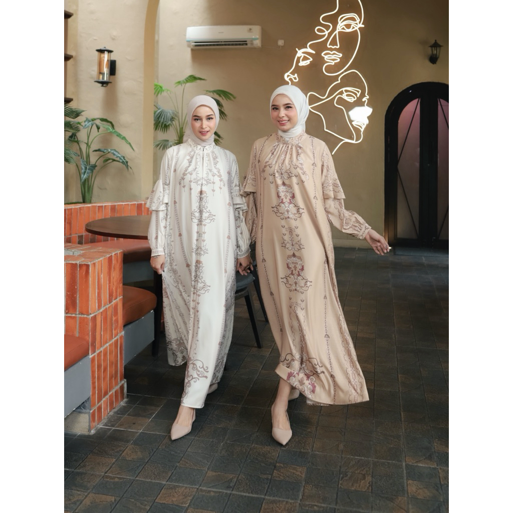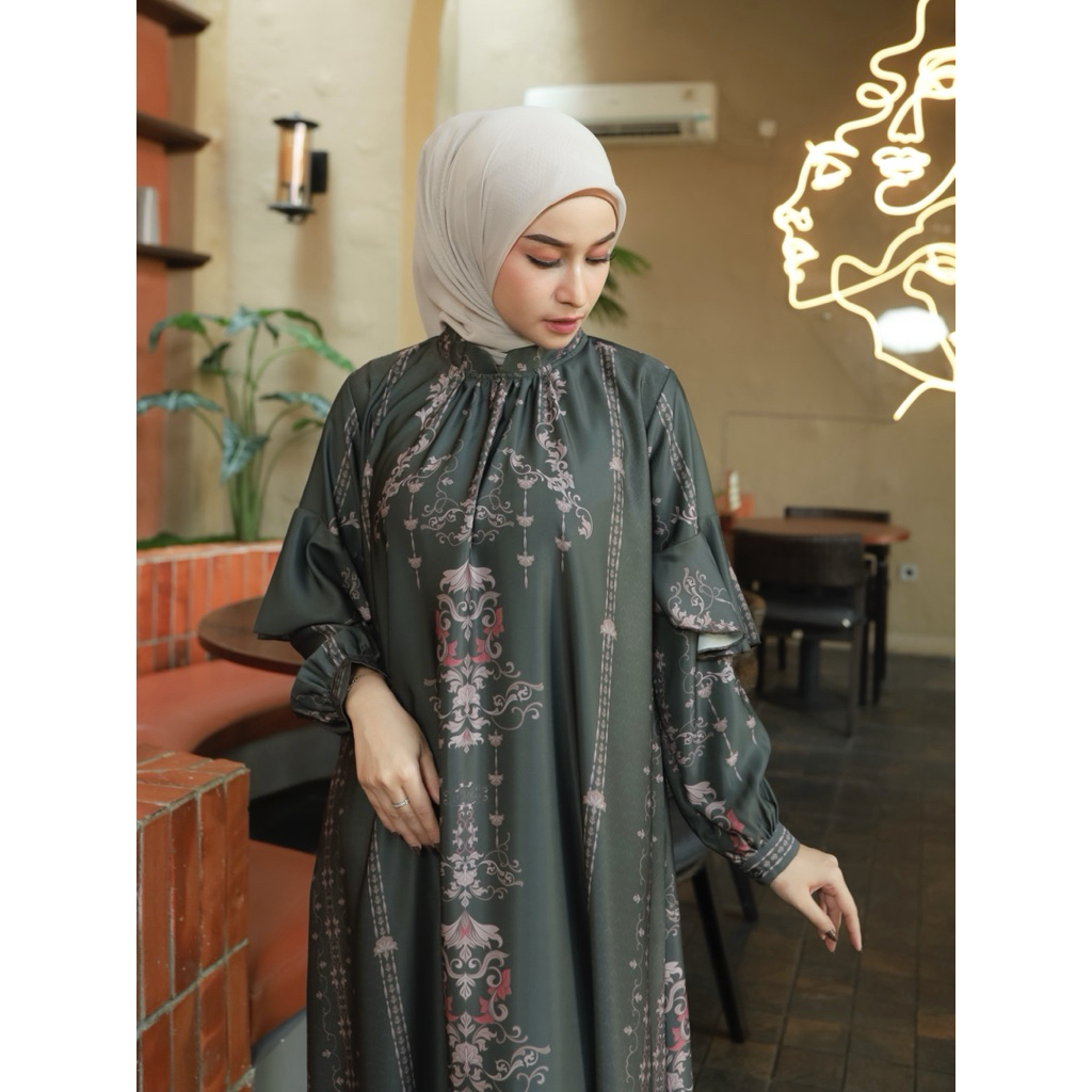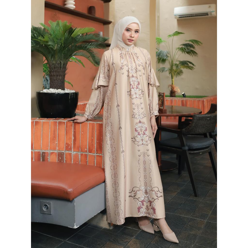 Merina Gallery - [PREMIUM ARUNA DRESS] Gamis Aruna Dress Silk Premium Motif Etnik Wanita Kekinian | Gamil Silk Premium M