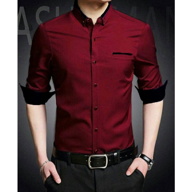 P&I SHOP FortKlass raffi kemeja polos pria lengan panjang formal slimfit cowok cowok cowo Slim Fit Casual Tangan Formal Kerja Kantor