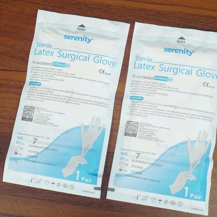 YUK BELI ! SERENITY LATEX SURGICAL GLOVE STERIL POWDERED PER PASANG - SIZE 7 PER PASANG ORI