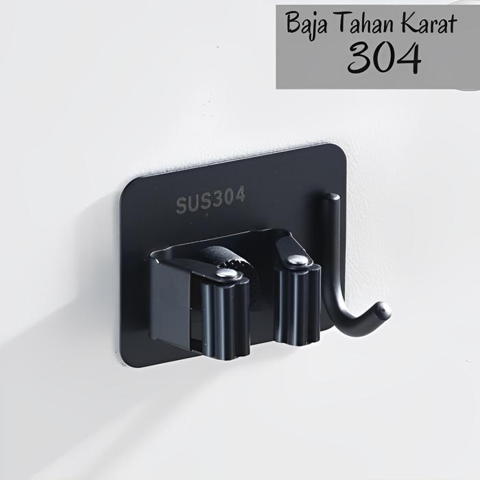 YUK BELI ! TEMPAT GANTUNGAN SAPU ALAT PEL DENGAN PENGAIT STAINLESS TEMPEL DINDING - SILVER ORI