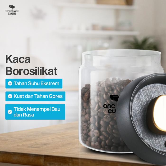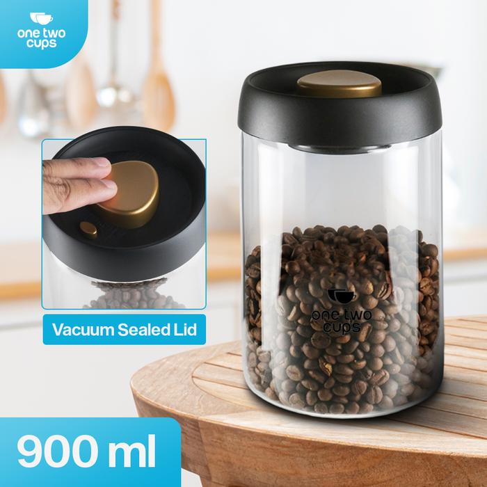 YUK BELI ! ONE TWO CUPS TOPLES KACA BIJI KOPI COFFEE BEANS VACUUM SEALED LID 900 ML GOLD ORI