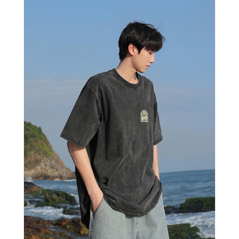 PUERTO Kaos Pria Distro Original 100% Pola alfabet Inggris pohon kelapa Baju Oversize Pria Retro T-shirt Atasan Premium