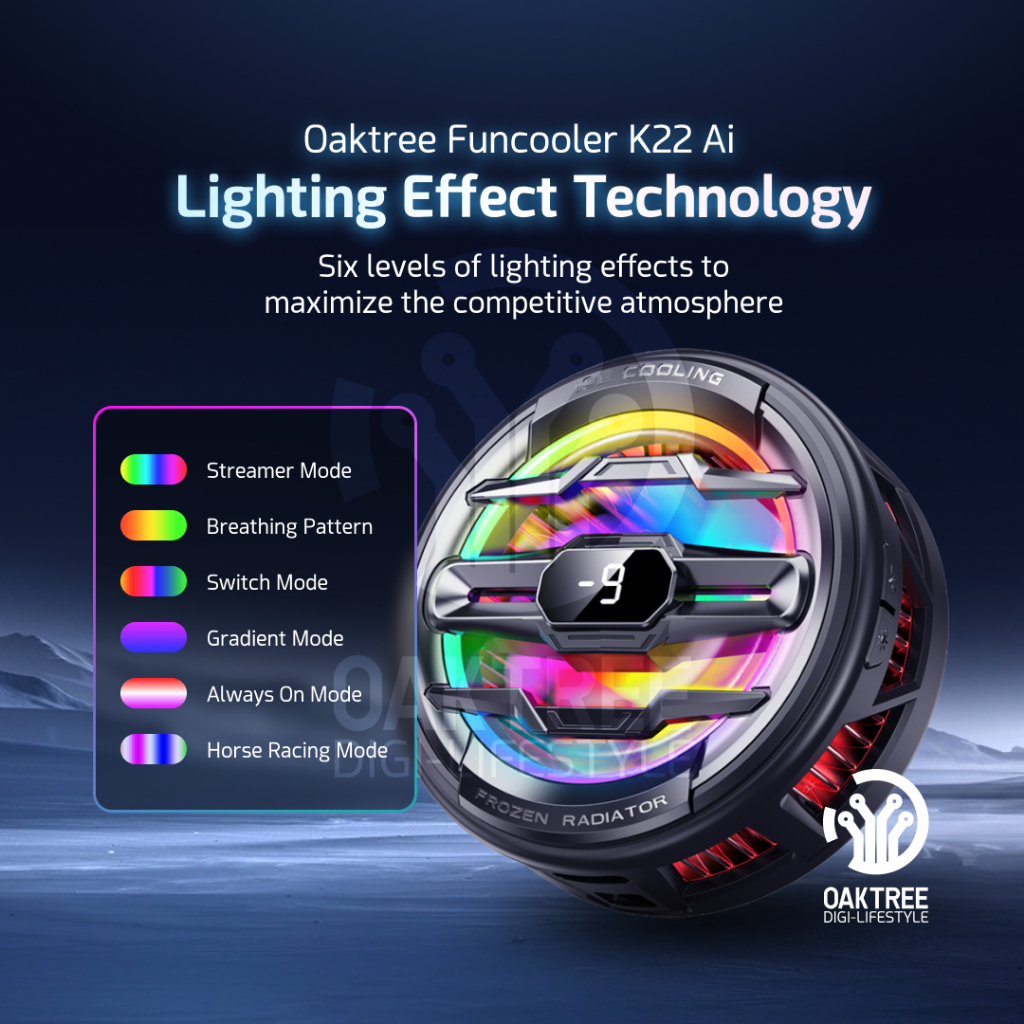 Oaktree Funcooler K22 Ai Fan Cooler Radiator Pendingin HP Cooling Fan Gaming