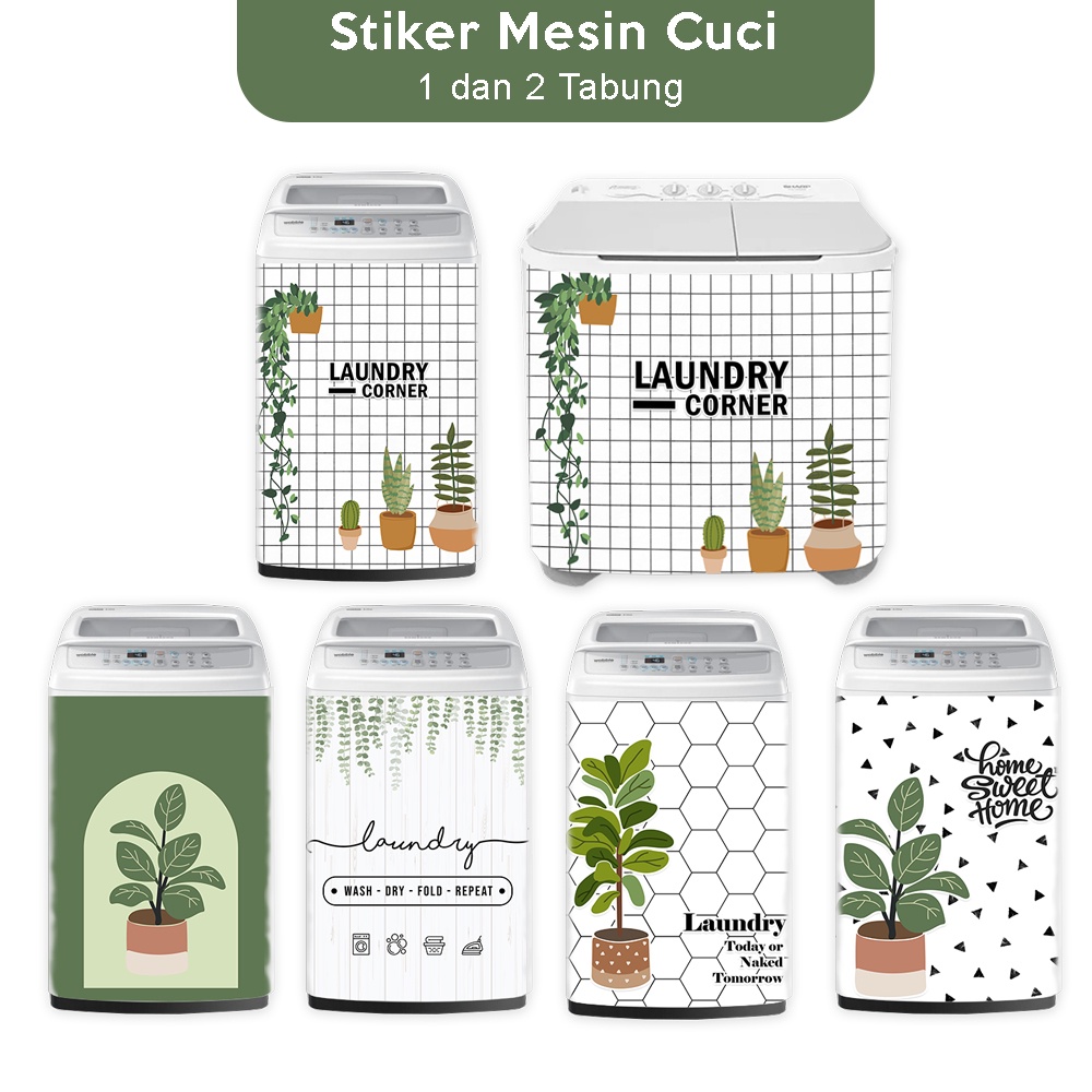 STIKER MESIN CUCI 1 2 TABUNG MOTIF MINIMALIS DAUN AESTHETIC