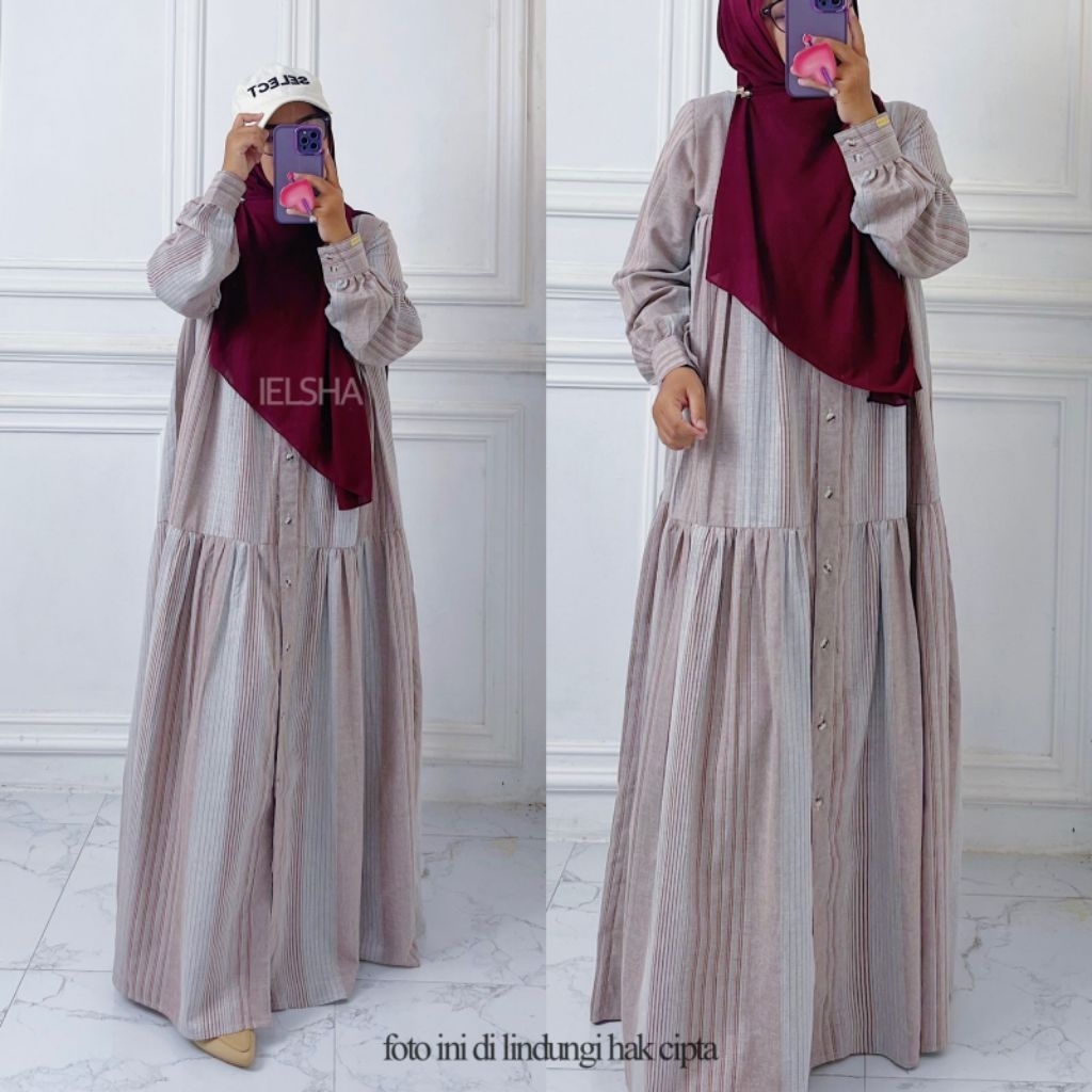 Kaluela Maxy by IELSHA Gamis dress bahan katun premium syar'i terbaru ern motif salur mewah sederhana cantik