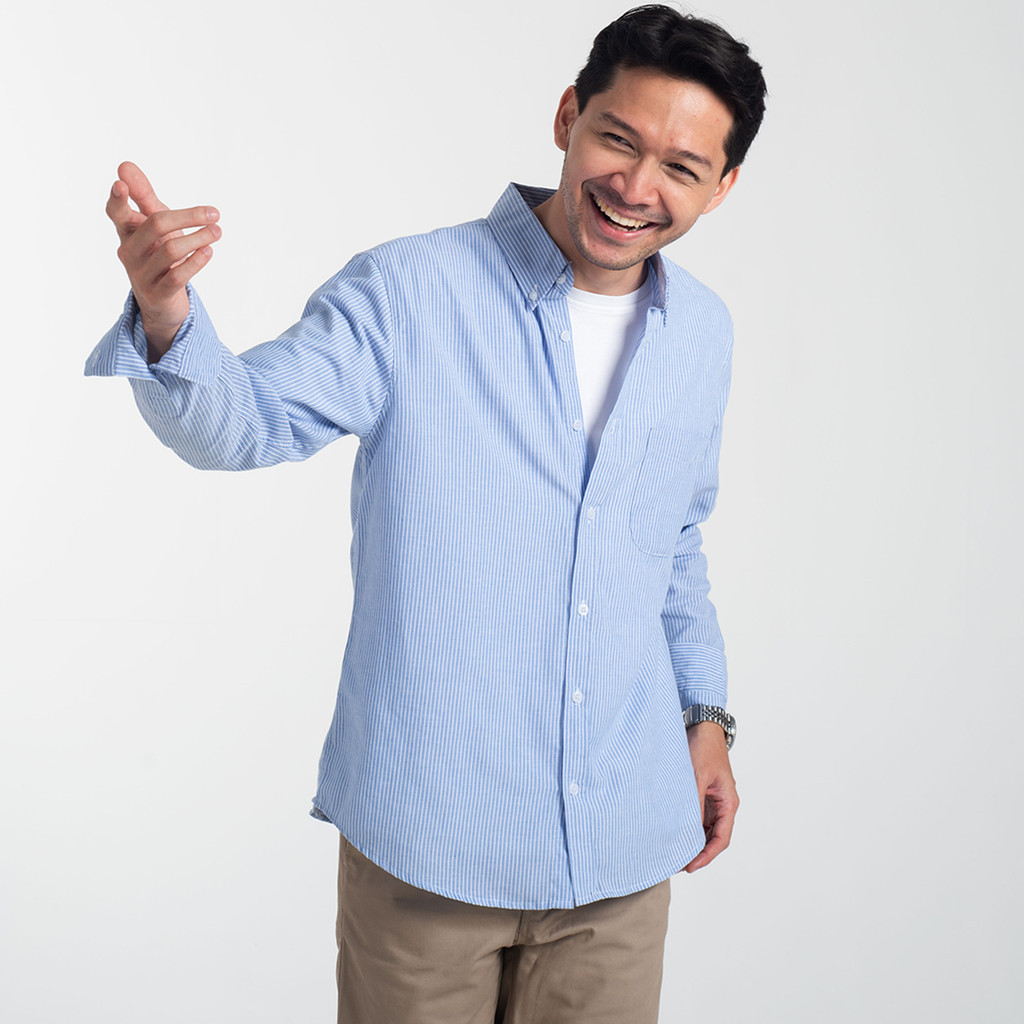 P&I SHOP Kemeja Garis Pria WOODCUTTER Basic Luxton Stripes - Light Blue Biru Muda Lengan Panjang