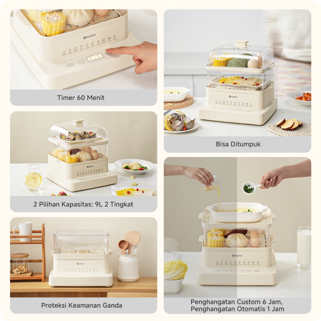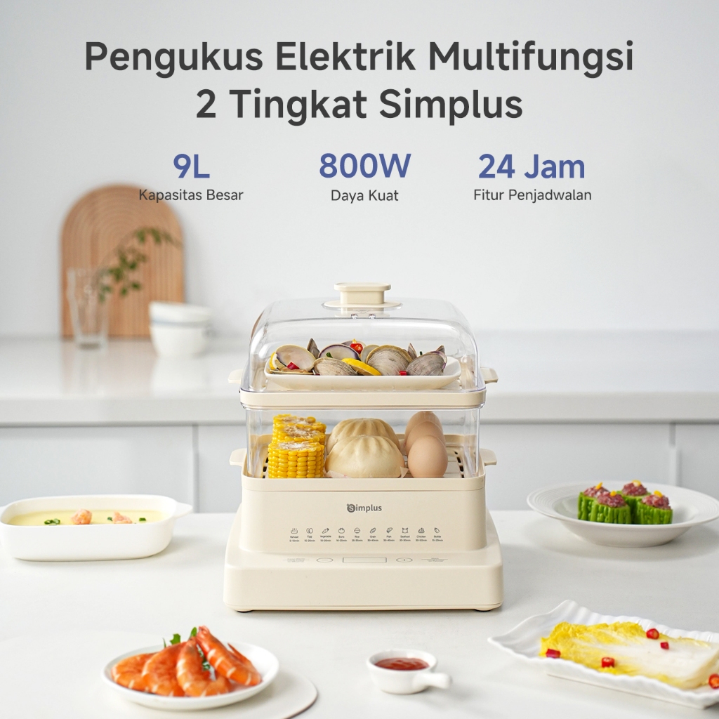 Simplus Kukusan Listrik Low Watt 9L Electric Steamer Multifungsi Mengukus Telur, Mengukus Ikan