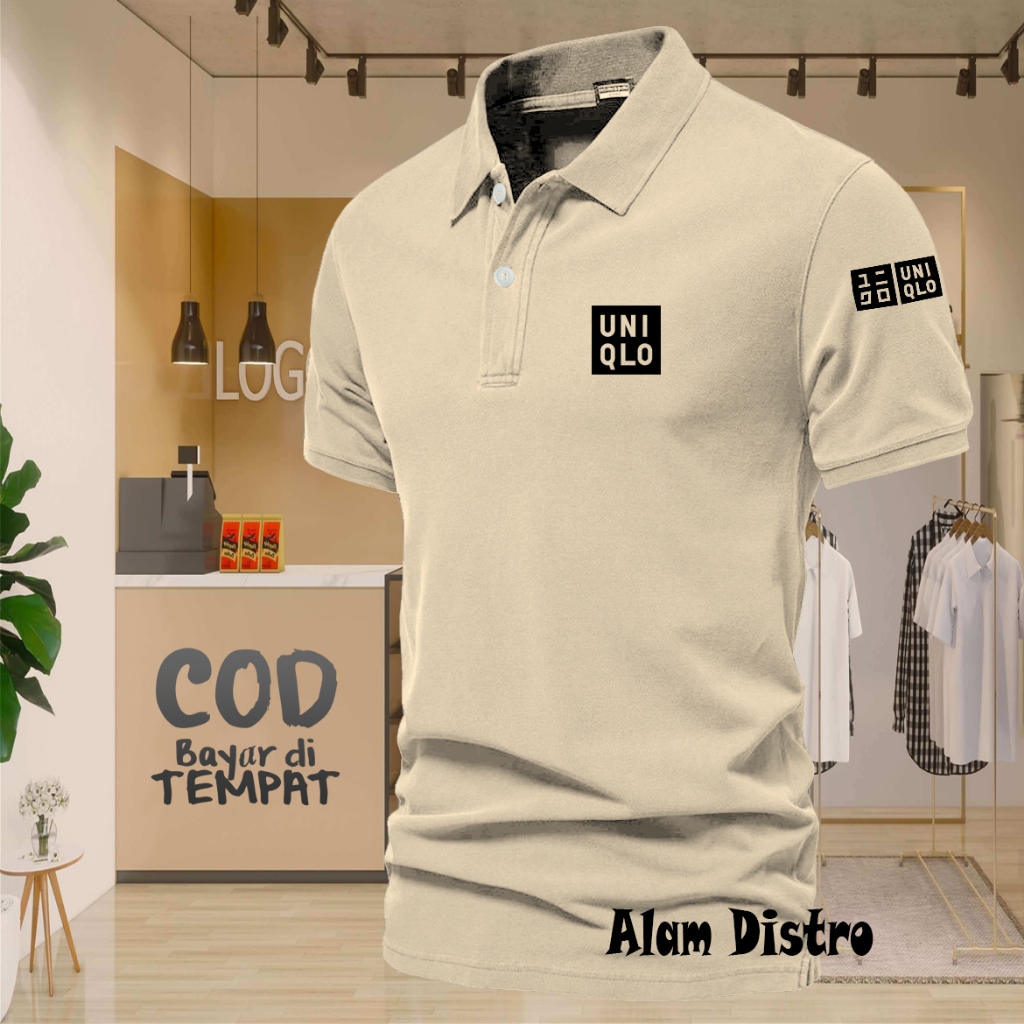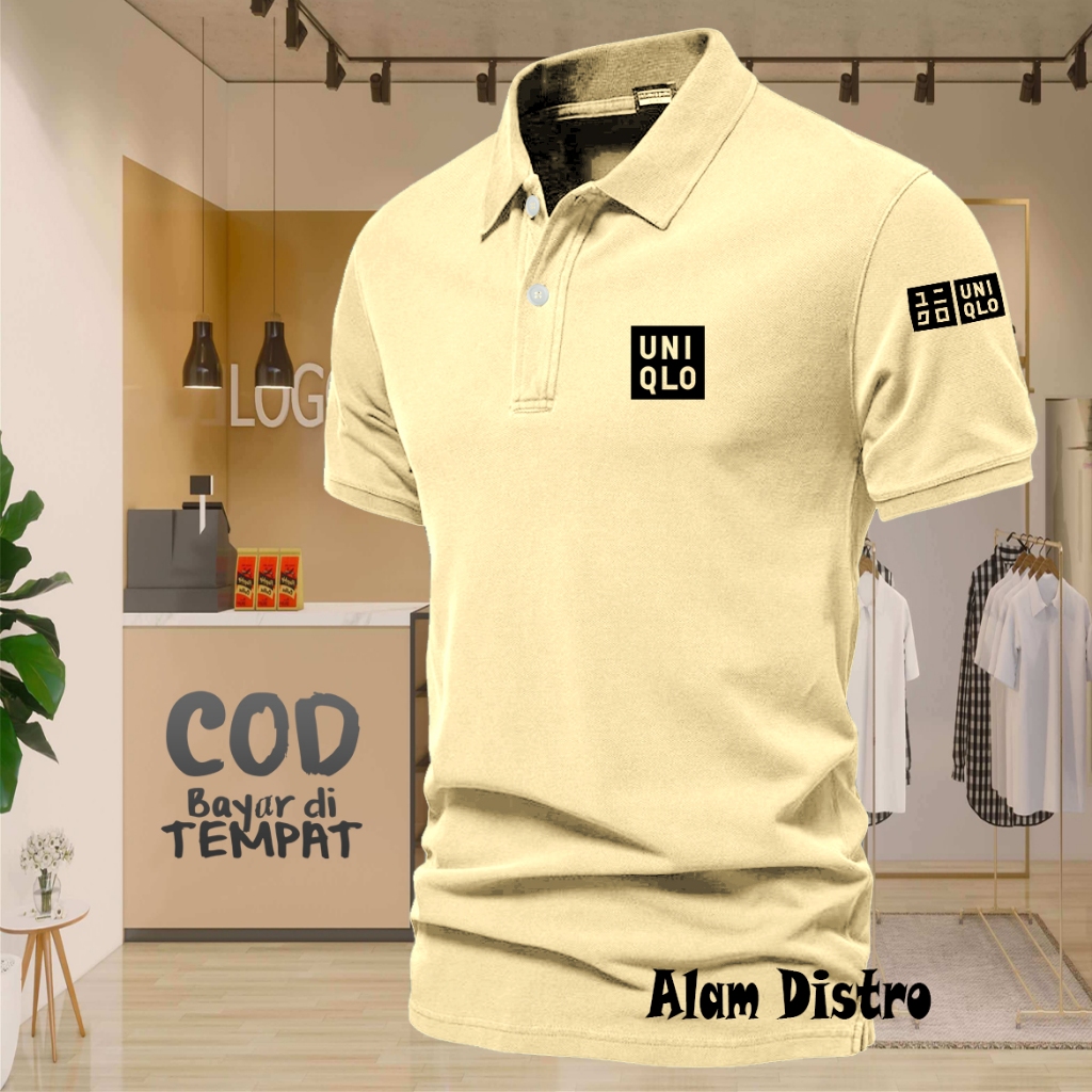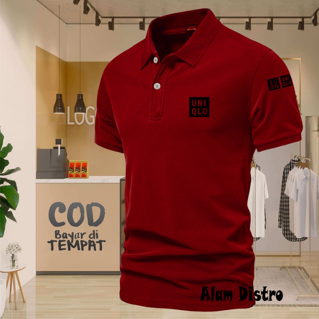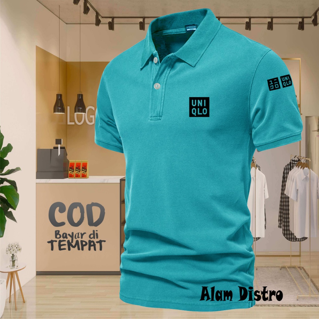 T-shrit POLO kerah Uniqlo Plus Lengan Text Hitam Kaos Kerah Dewasa Shirt / Kaos Wangki Pria Polo / Kaos Seragam