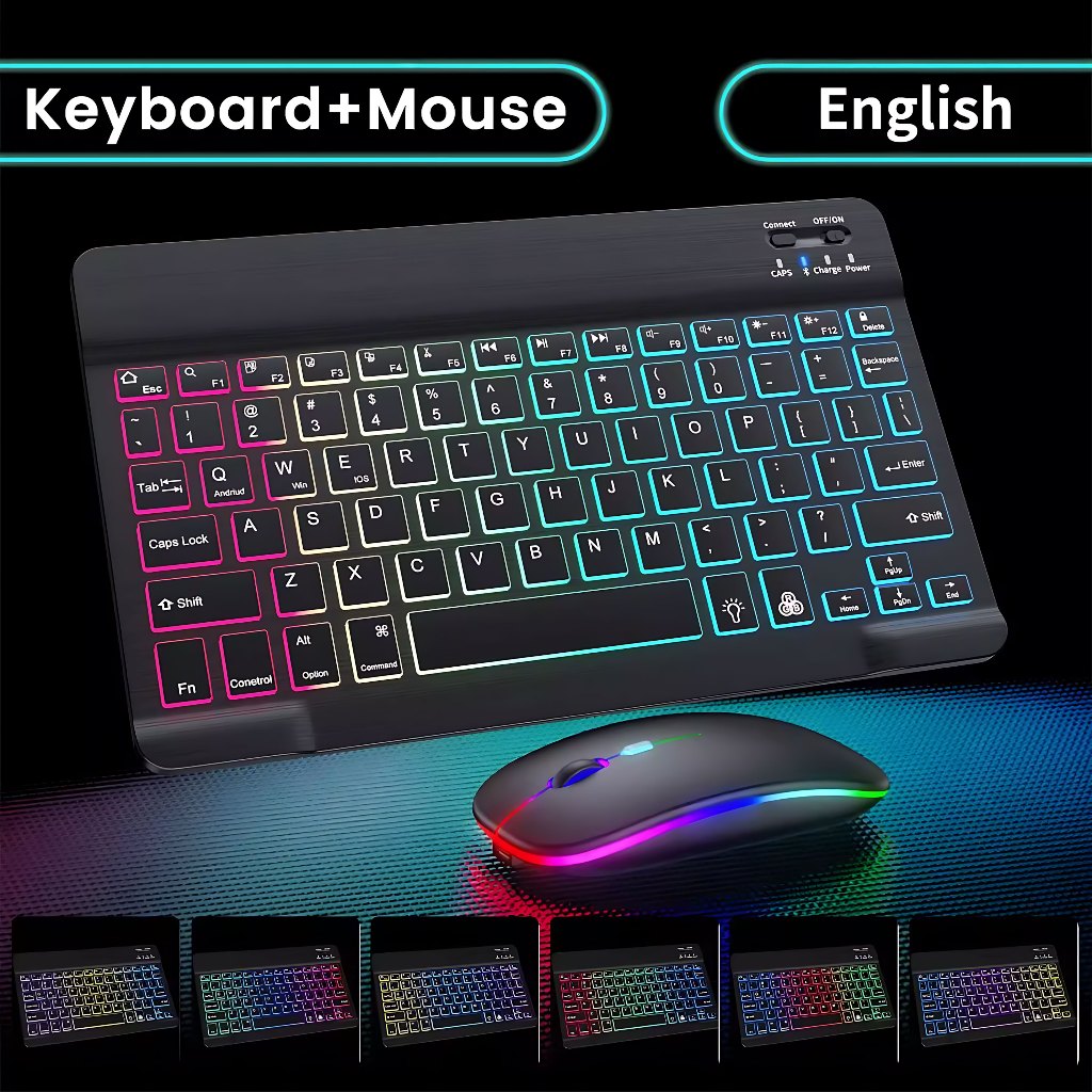 【】10-Inch RGB Backlit Wireless keyboard Rechargeable Bluetooth keyboard And Mouse Set For IPAD Pad