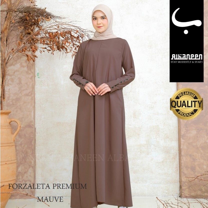TERBARU Abaya Dress Mauve Cantik | Gamis warna Mauve terbaru 2025 dengan kancing tangan bahan Forzaleta Wollpeach elegan