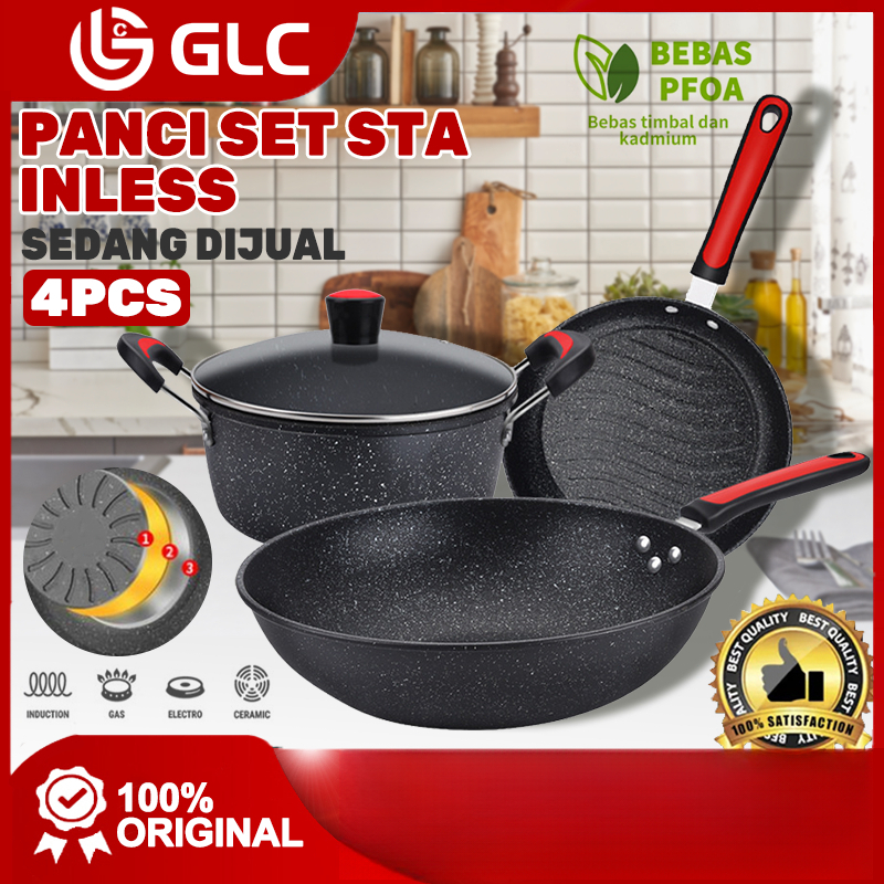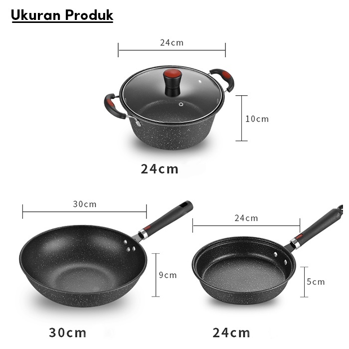 Panci Set isi 3 pcs Marble Coating Set Antilengket Peralatan Masak 3PCS Peralatan Dapur Blaze Wajan Set