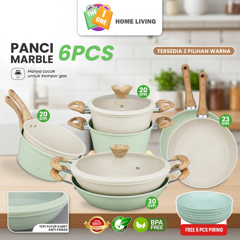 ( PIRING)Set Panci Marble 6 Pcs Anti Lengket - Panci Wajan Serbaguna Estetik