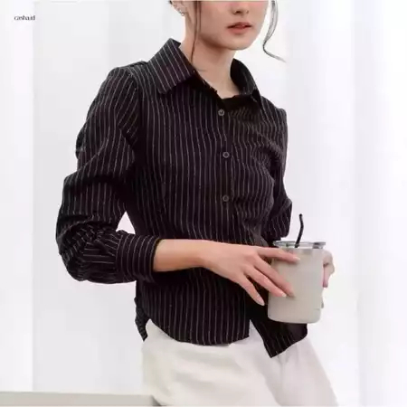 Atasan Wanita Kekinian Luna Stripe Fitted Series Premium Kemeja Wanita Lengan Panjang Korean Style Best Seller Murah