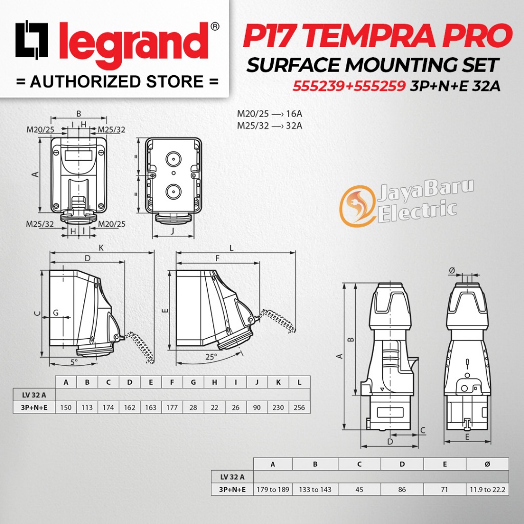 Legrand Paket 1 Set Plug Surface Mounting Socket 3P+N+E / 5 Pin 5Pin 32A IP44 P17 Tempra Pro 555239 555259