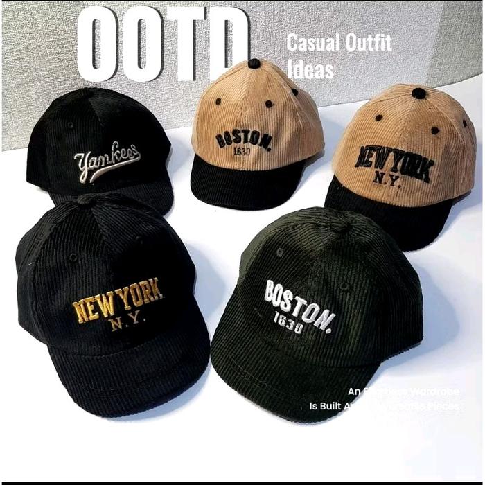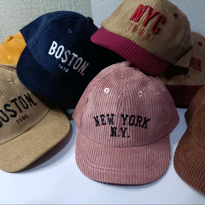 Topi Korduroy Anak / Topi Anak Corduroy/ Topi Boston Anak Topi Baseball Anak Boston Bordir Fashion - Boston coklat