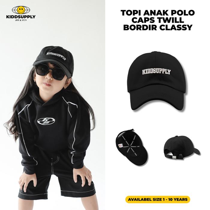 KiddSupply Topi Anak Polo Caps Twill Bordir Classy l Topi Anak-anak | Twill Cap Kids | KDCAP01 - Black