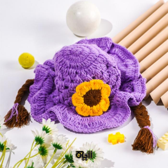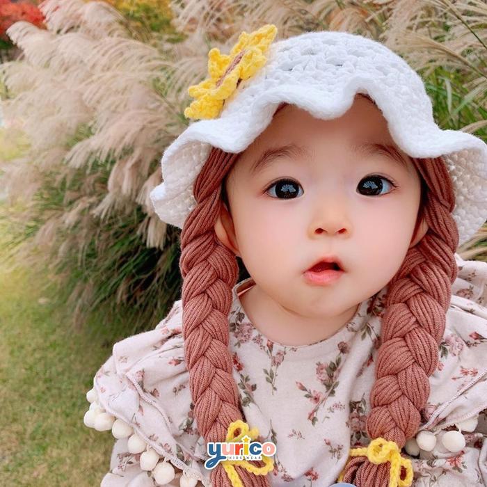 Topi Renda Rambut Kepang Anak Motif Bunga dan Vita - Putih