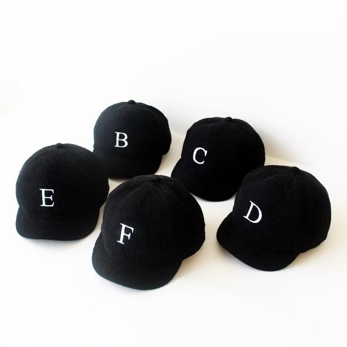 DASHAIL - Topi Baseball Alfabet Hitam Anak Bayi Bordir Timbul Bahan Corduroy Unisex Usia 6 Bulan-3 Tahun - A