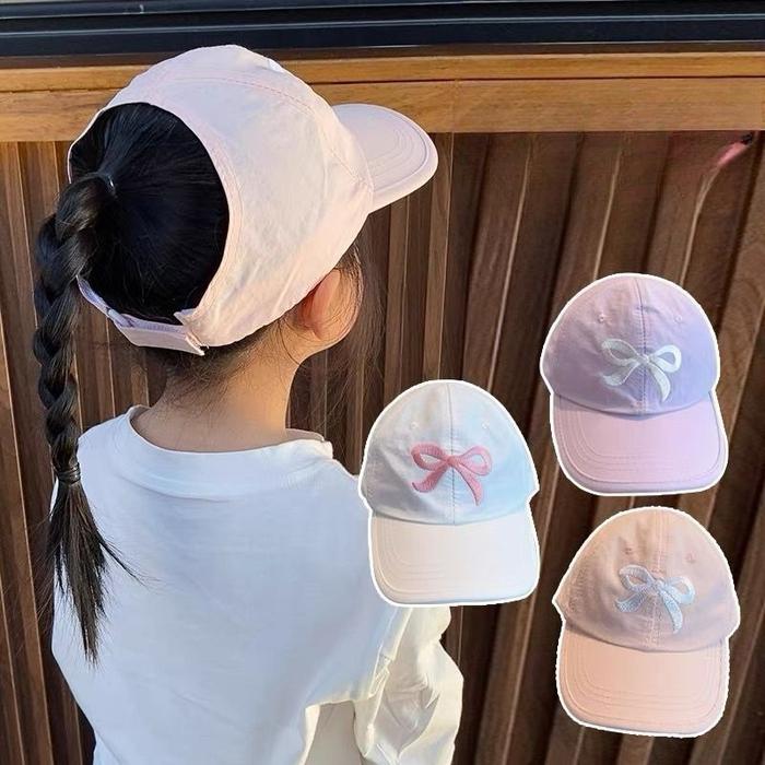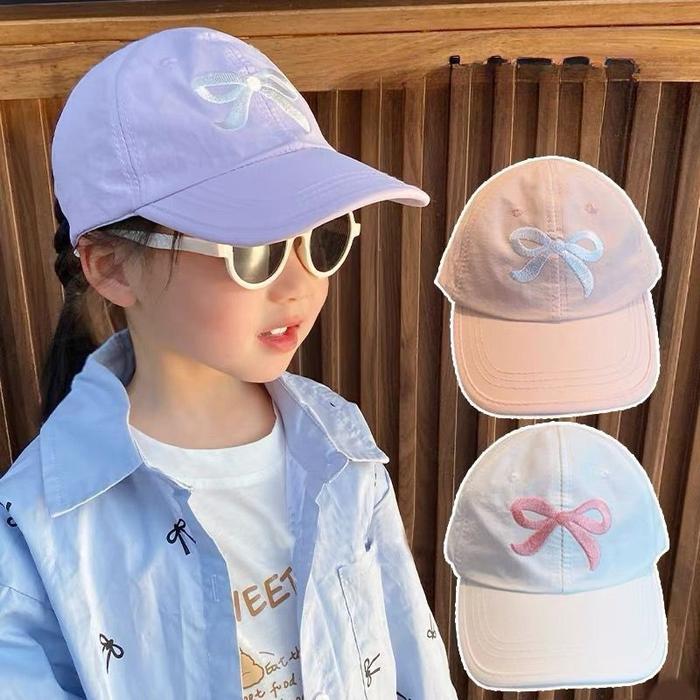 [KIDSFASHIONKOLEKSI] Topi Baseball Cap Anak Perempuan Ribbon Half Empty Topi Musim Panas Pita Bordir Anak - Hitam