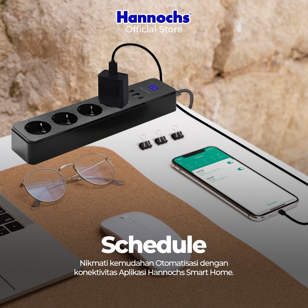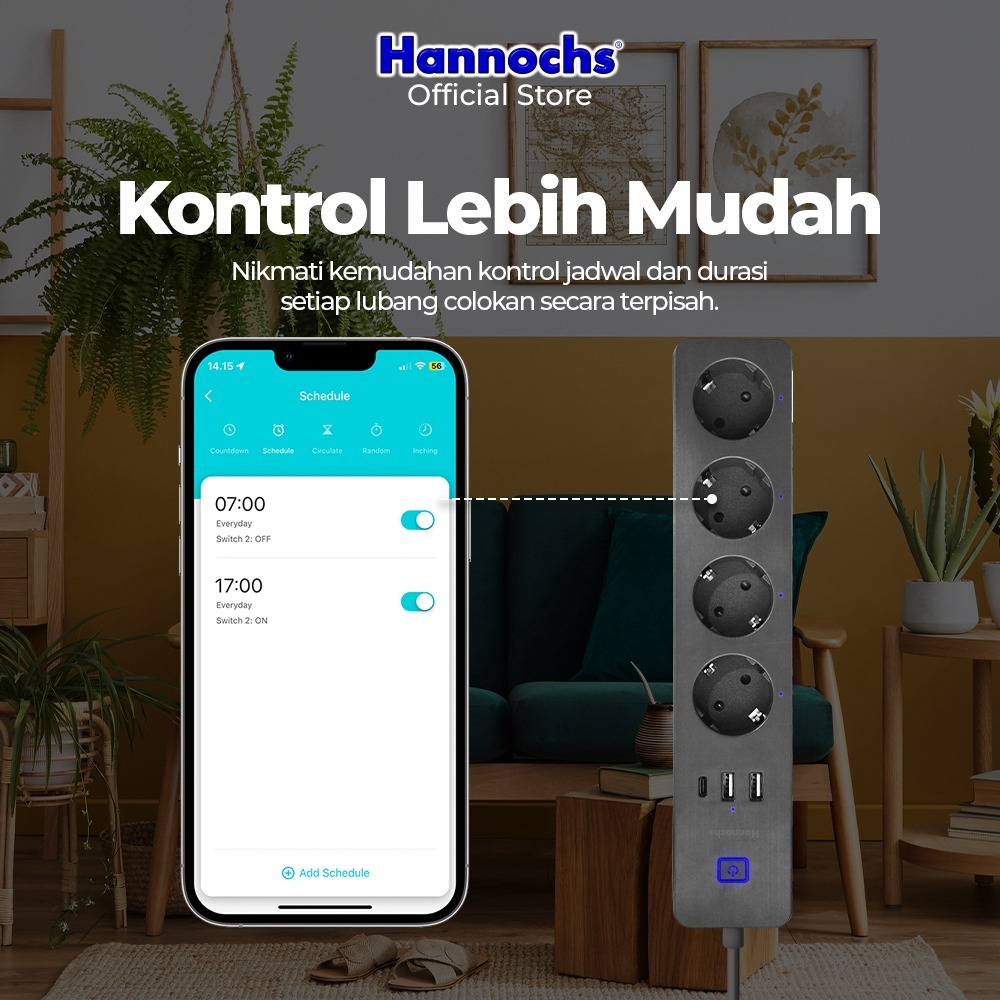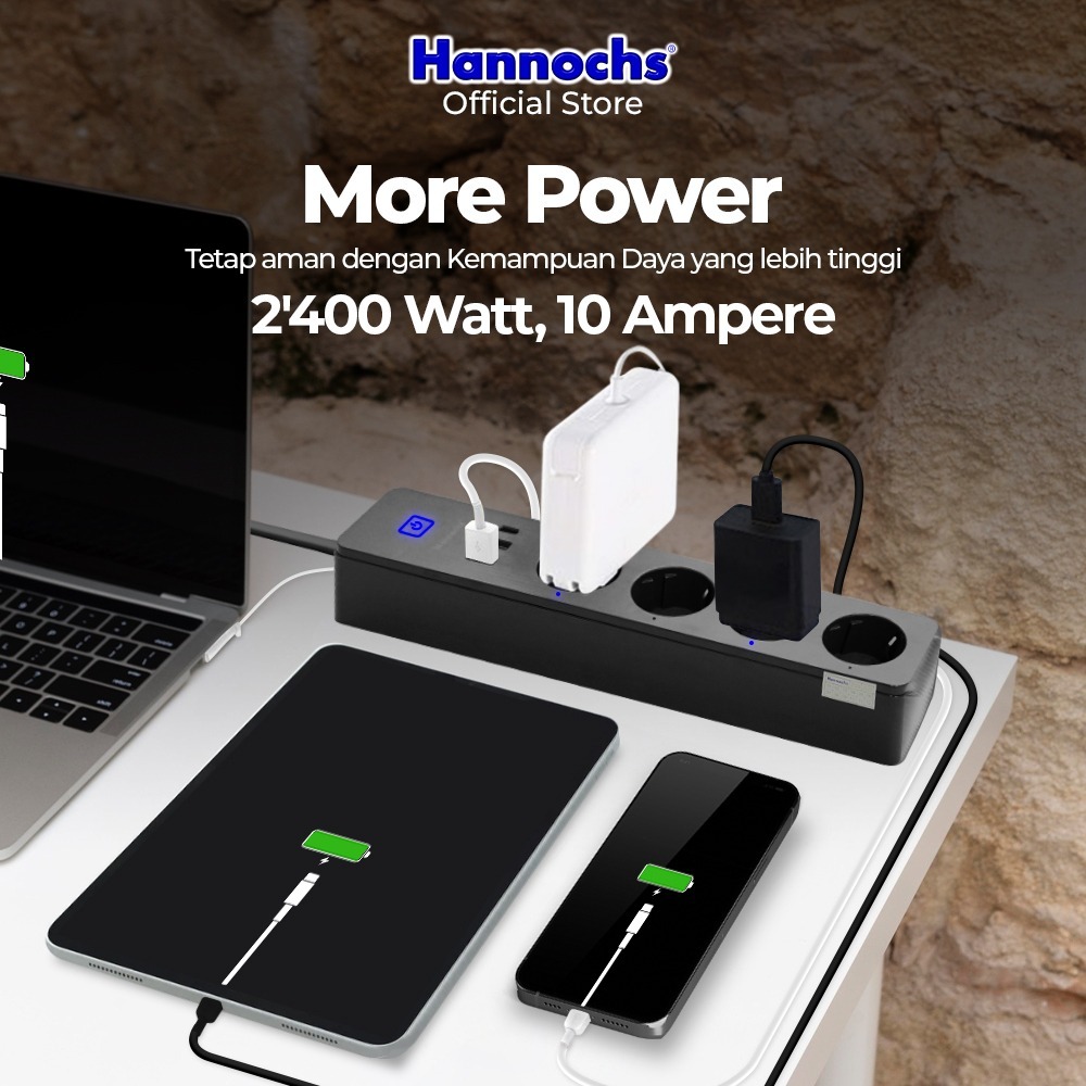 Hannochs Stop Kontak Kabel 2 Meter Smart Power Strip Extension 02A Steker Socket Plug Wifi Smart Plug ber-SNI Pertama di