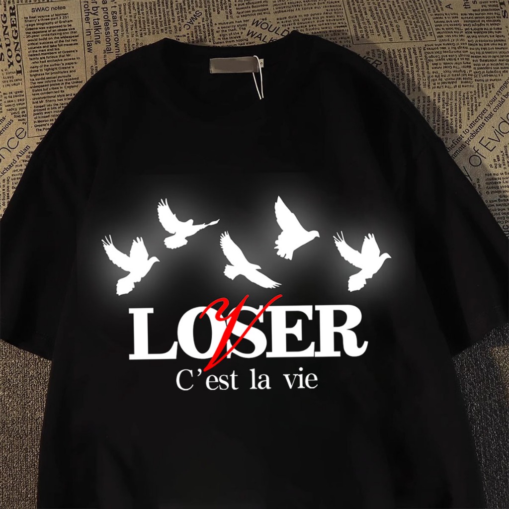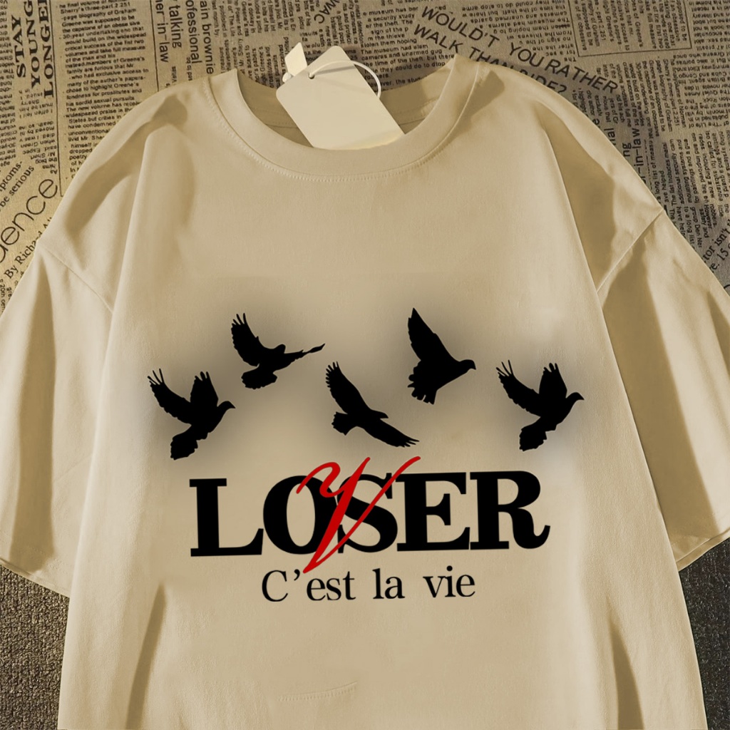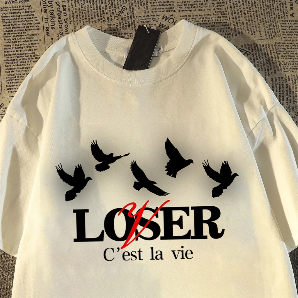 TINY Kaos Pria T-shirt Baju Kaos Oversize | Loser pencetakan Gaya Amerika | Vintage Longgar Kaos Washed Pria Baju Kaos D