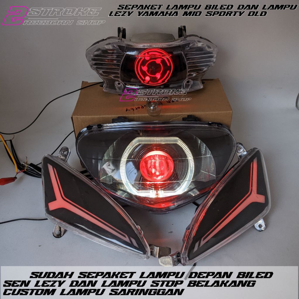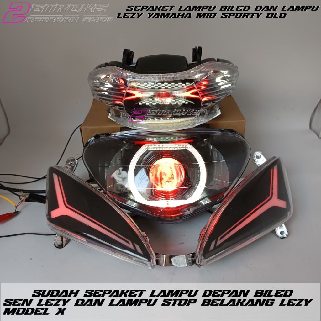 sepaket lampu biled dan lampu lezy yamaha mio sporty old cusstom lampu depan biled 4,5 inc lampu sen lezy dan lampu stop