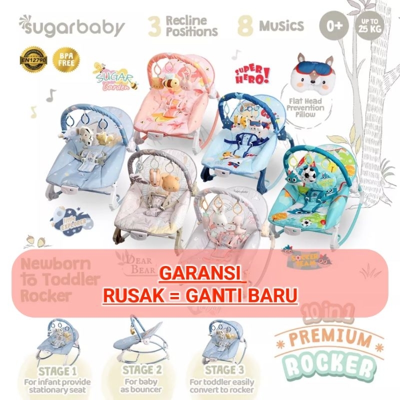 [Star] Sugar Baby 10in1 Premium Rocker/Ayunan Bayi/Bouncer Bayi/Kursi Goyang Manual Sugarbaby