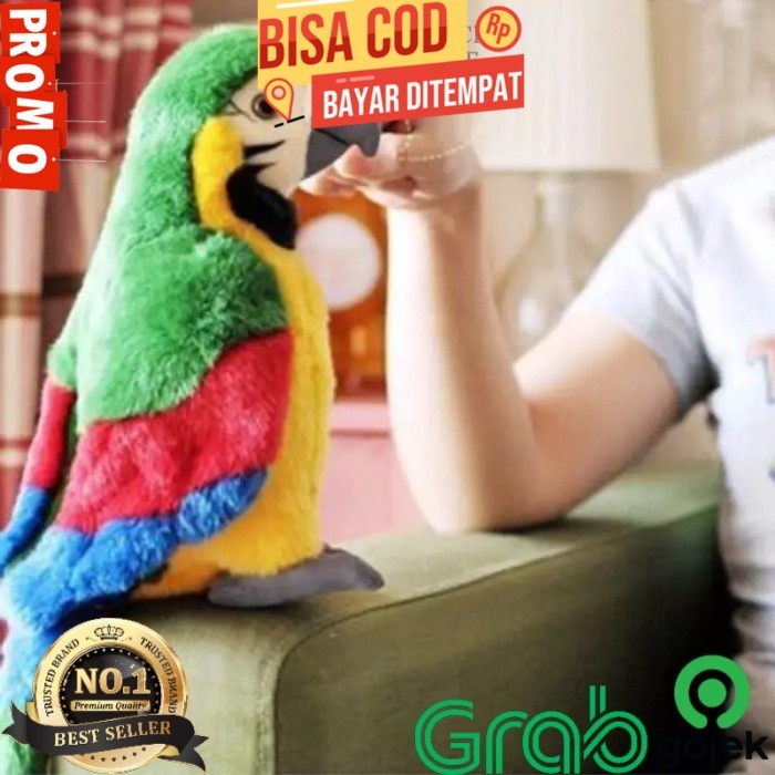 Boneka Talking Burung Beo Mainan Anak Bisa Meniru Suara & Bergerak Ta