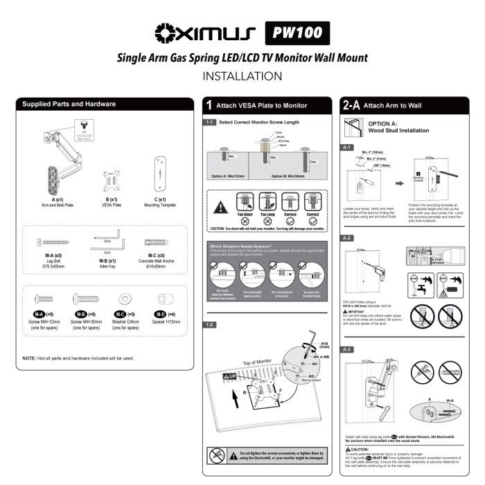 Bracket Monitor TV Wall Gas Spring Naik Turun 24" - 34" OXIMUS PW100 - PW100 Black