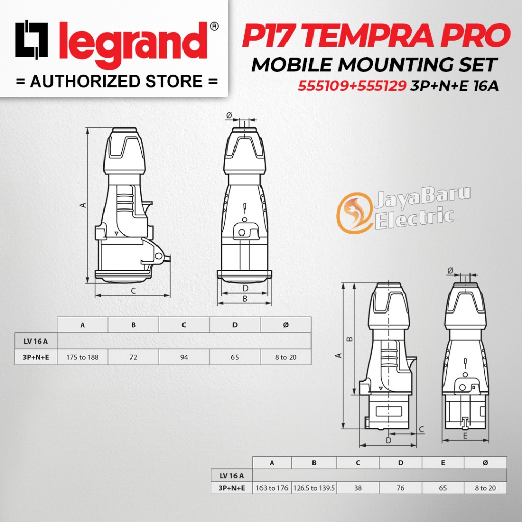 Legrand Paket 1 Set Plug Mobile Mounting Socket 3P+N+E / 5 Pin 5Pin 16A IP44 P17 Tempra Pro 555109 555129
