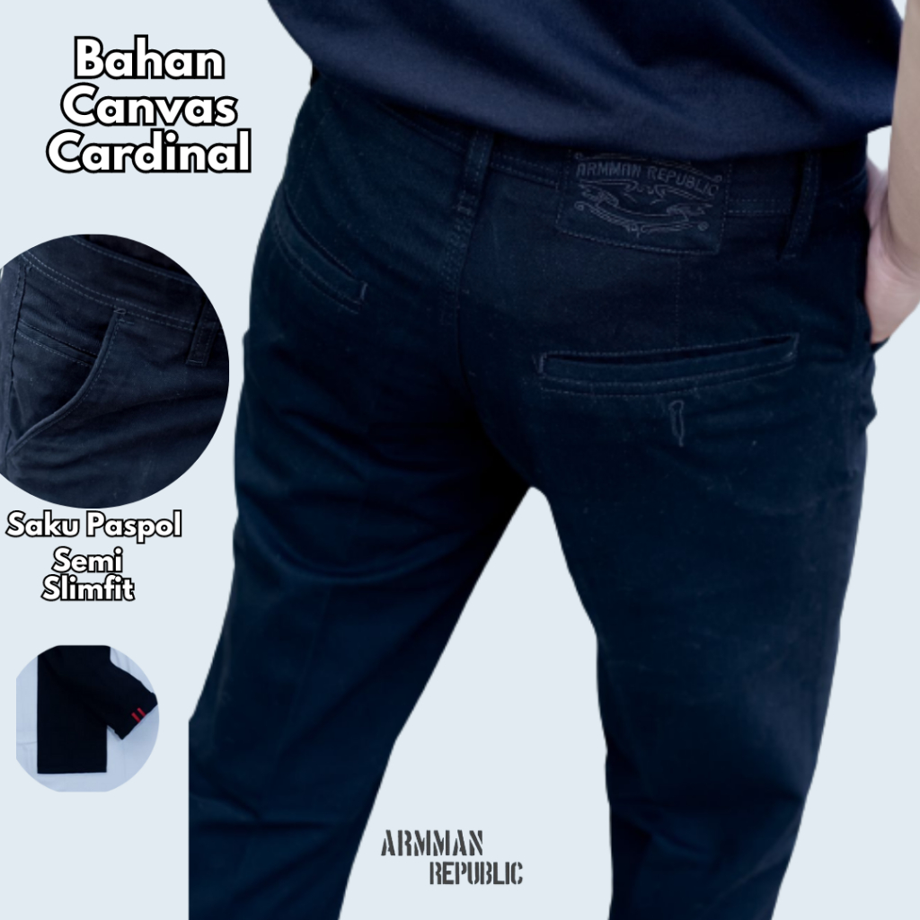 P&I SHOP Armman Republic - Celana Chinos Panjang Pria Kanvas Semi Slimfit Saku Paspol Size 28-45