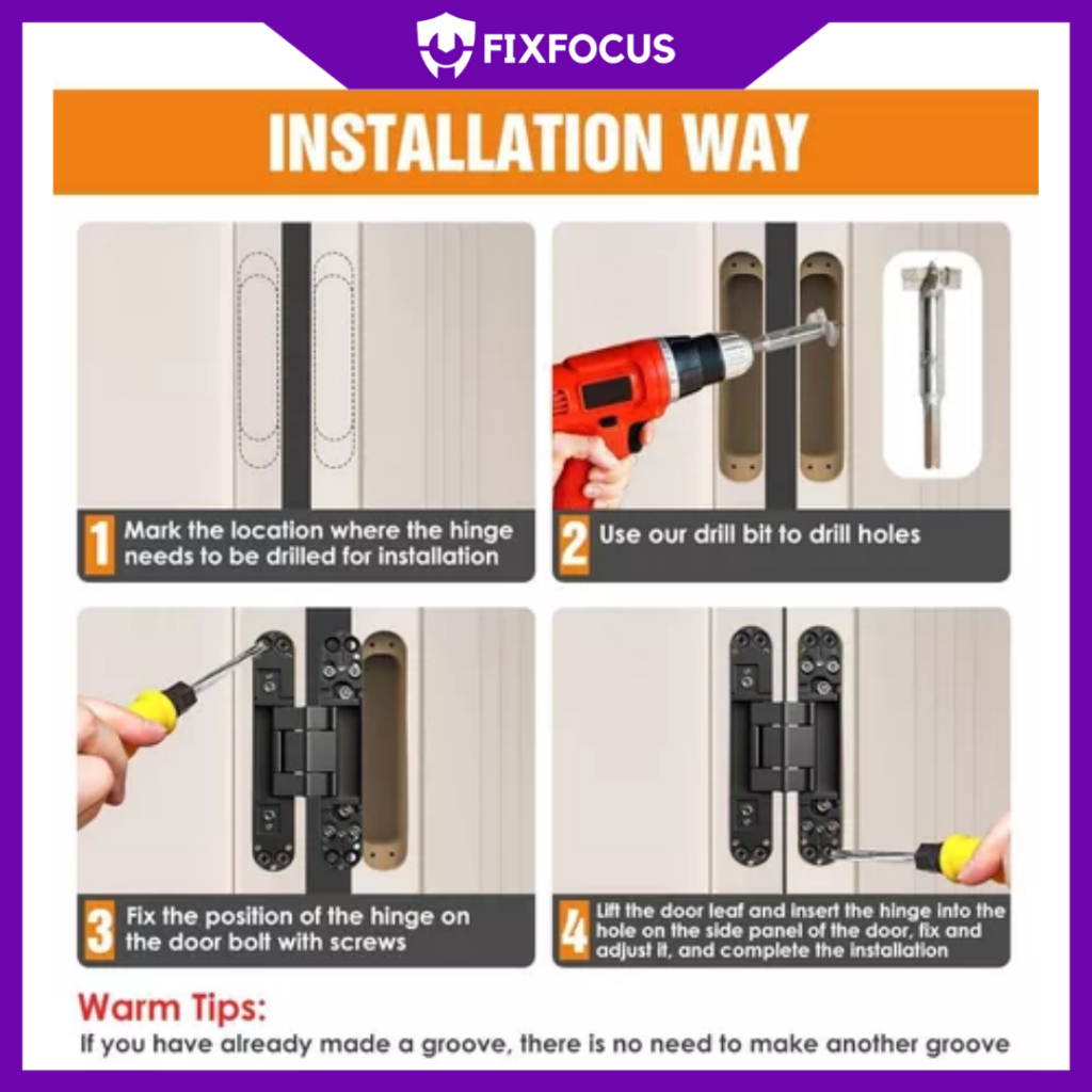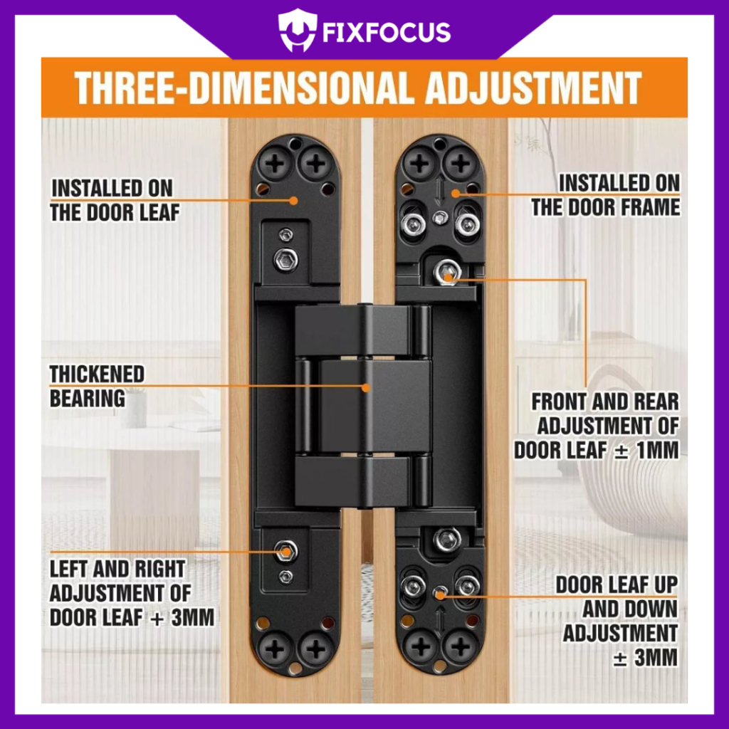 Engsel Pintu Tanam Kamuflase Tersembunyi Invisible Hidden Concealed Door Hinge Adjustable Fixfocus