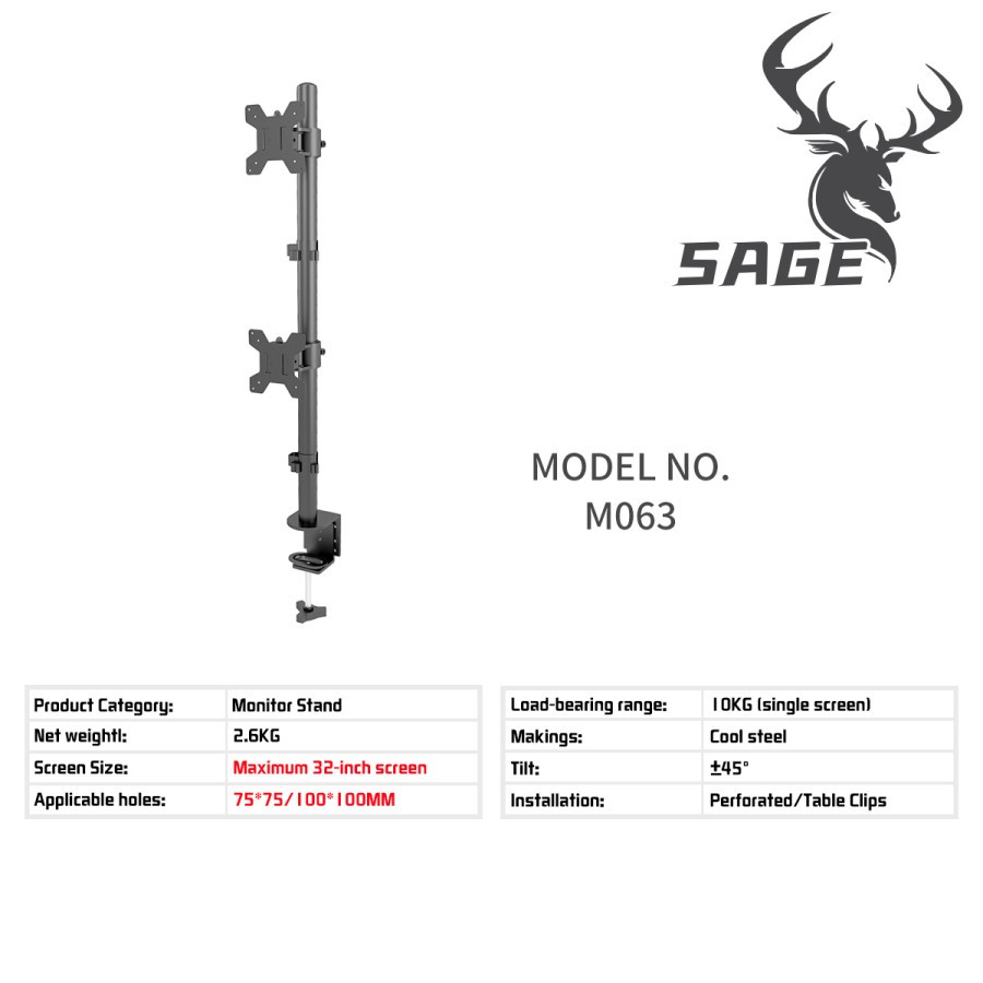 BRACKET MEJA LCD LED TV 2 Monitor arm 13" - 27" breket SAGE M063 articulating monitor arm