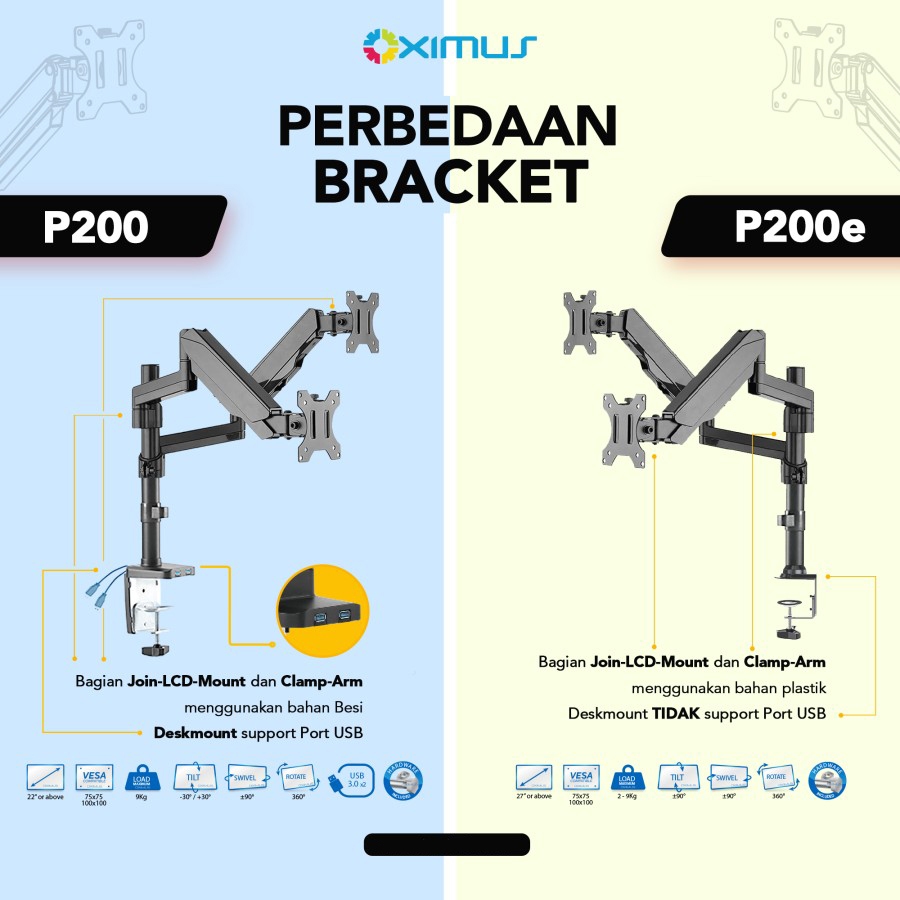 Bracket Monitor Gas Spring OXIMUS P200e | Dual Monitor LCD LED